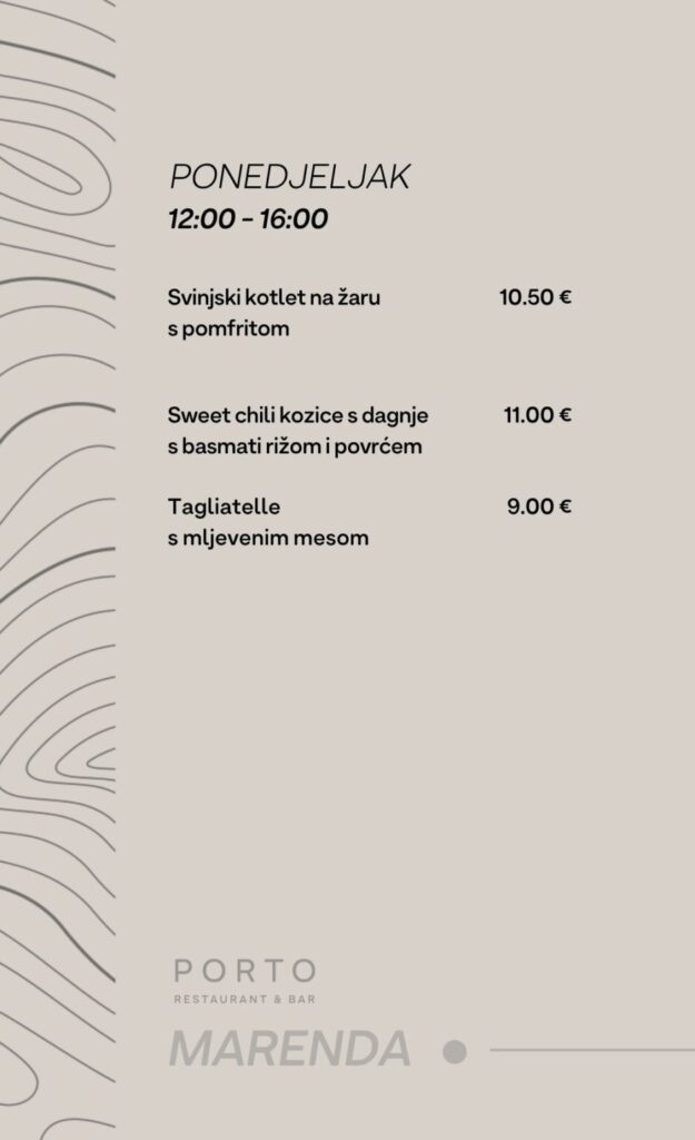 Bar & Restoran Porto, Hrvatskog Crvenog Križa 2, Dubrovnik, kont. 020 301-450ne vrše dostavumoguće preuzimanje u restoranu