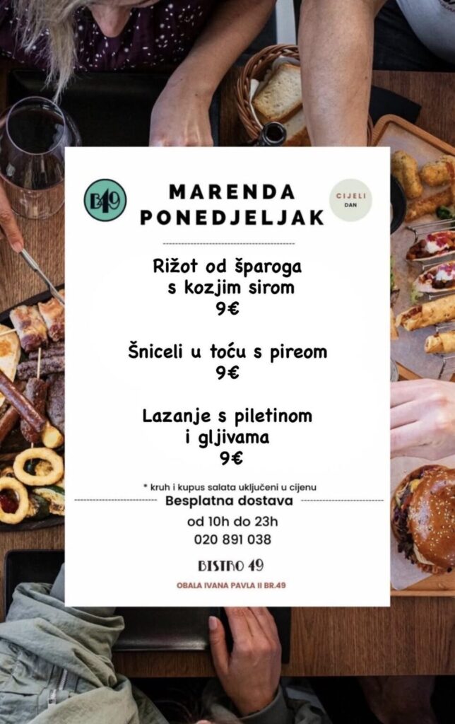 Bistro 49, Obala Ivana Pavla II, br.49, kontakt 020 891 038, moguća dostava