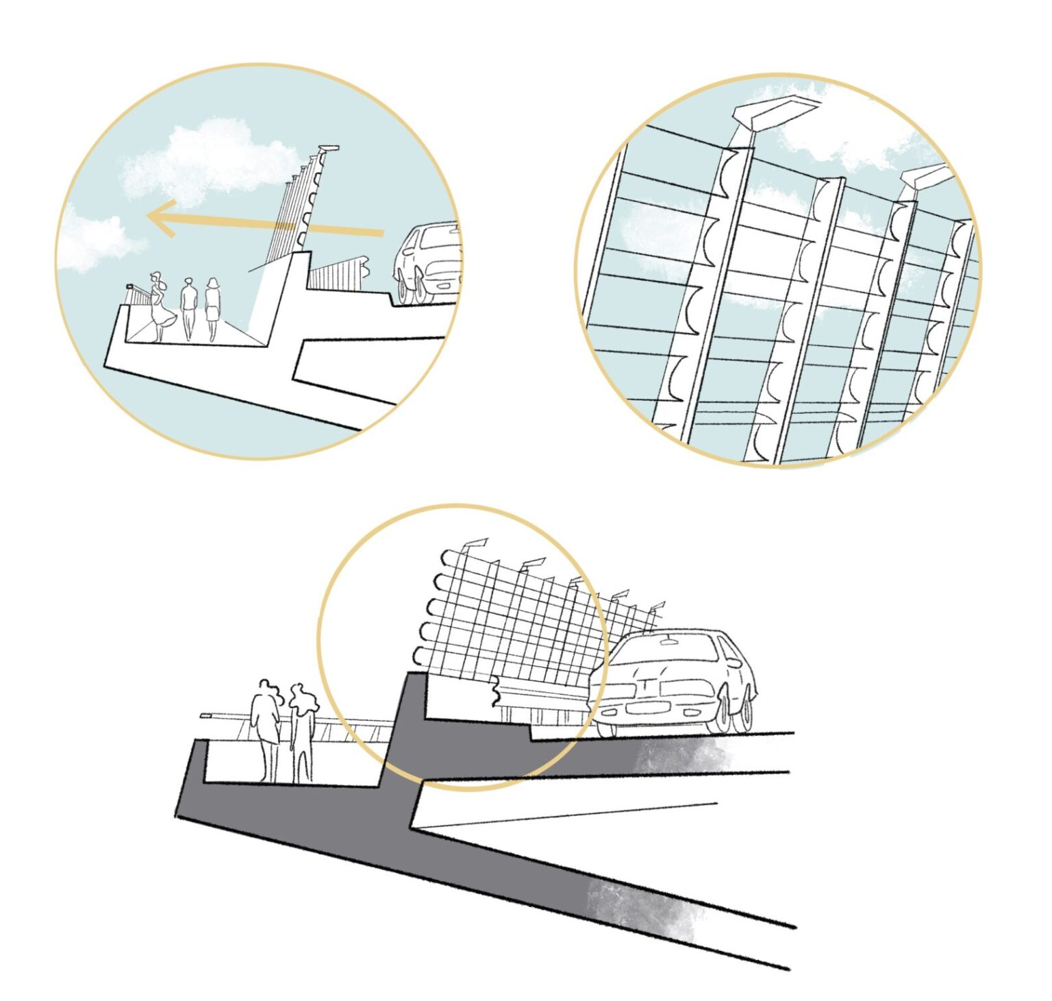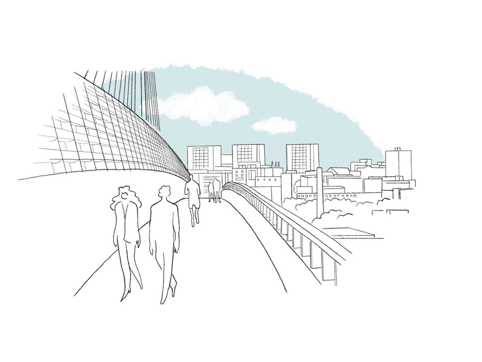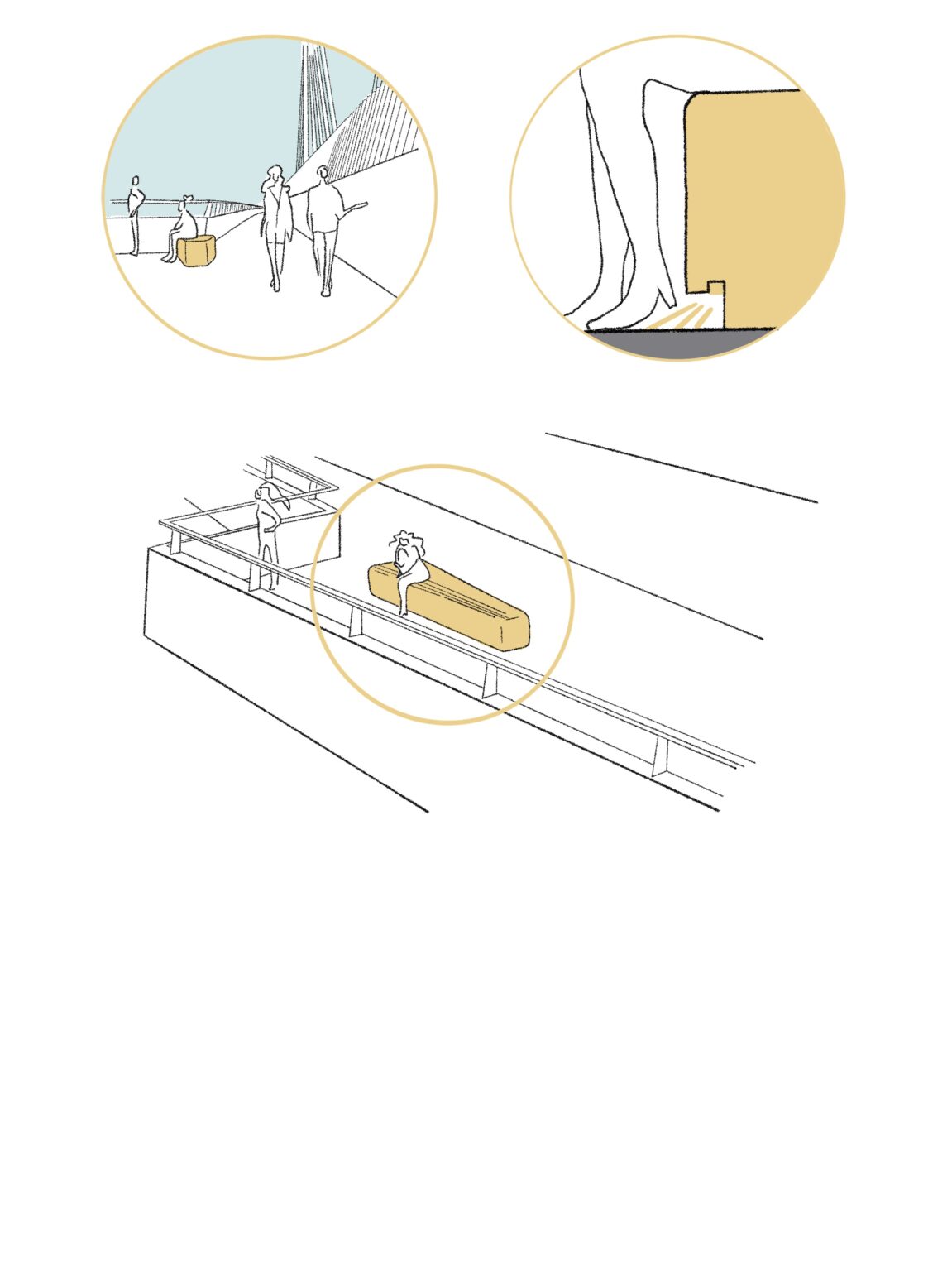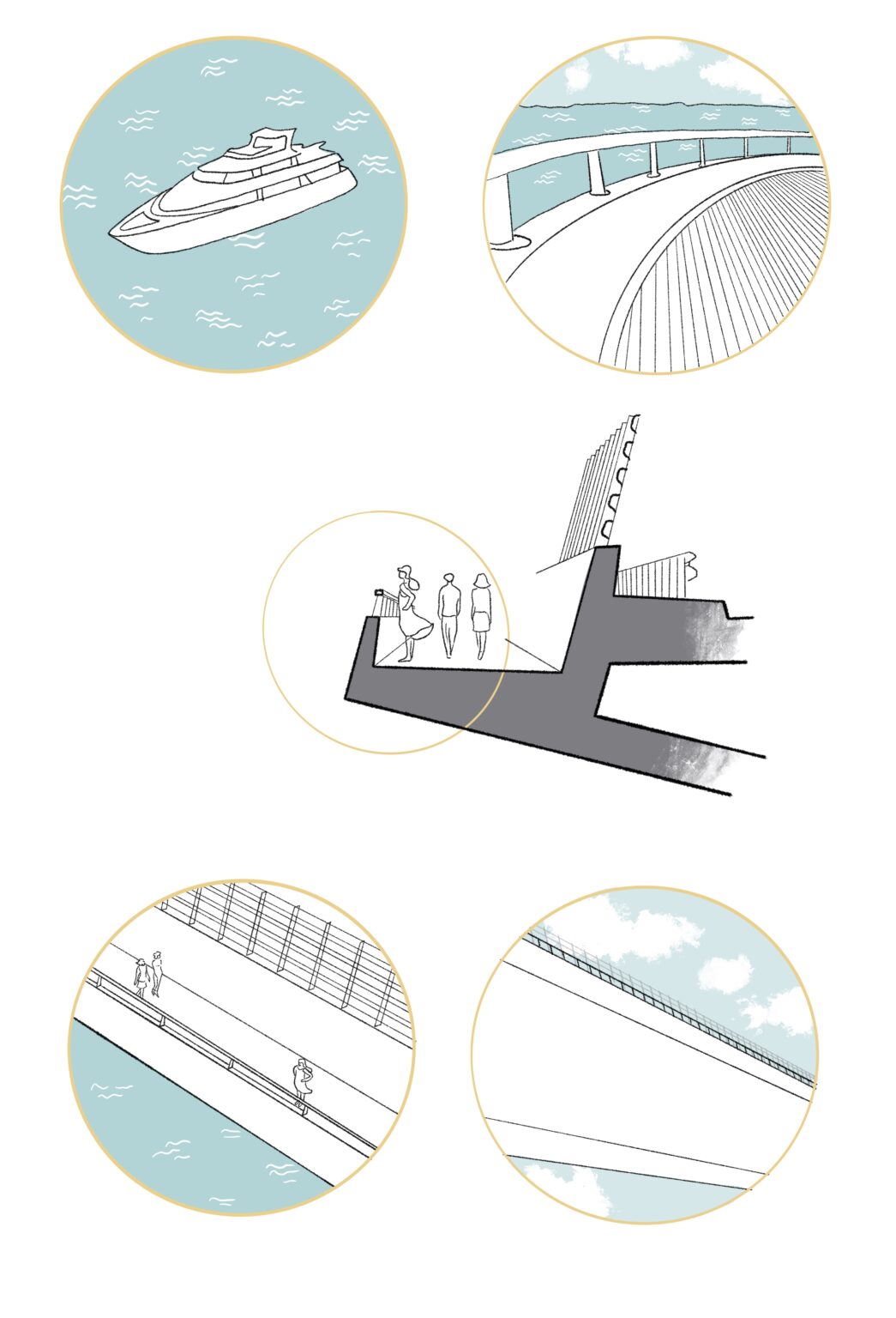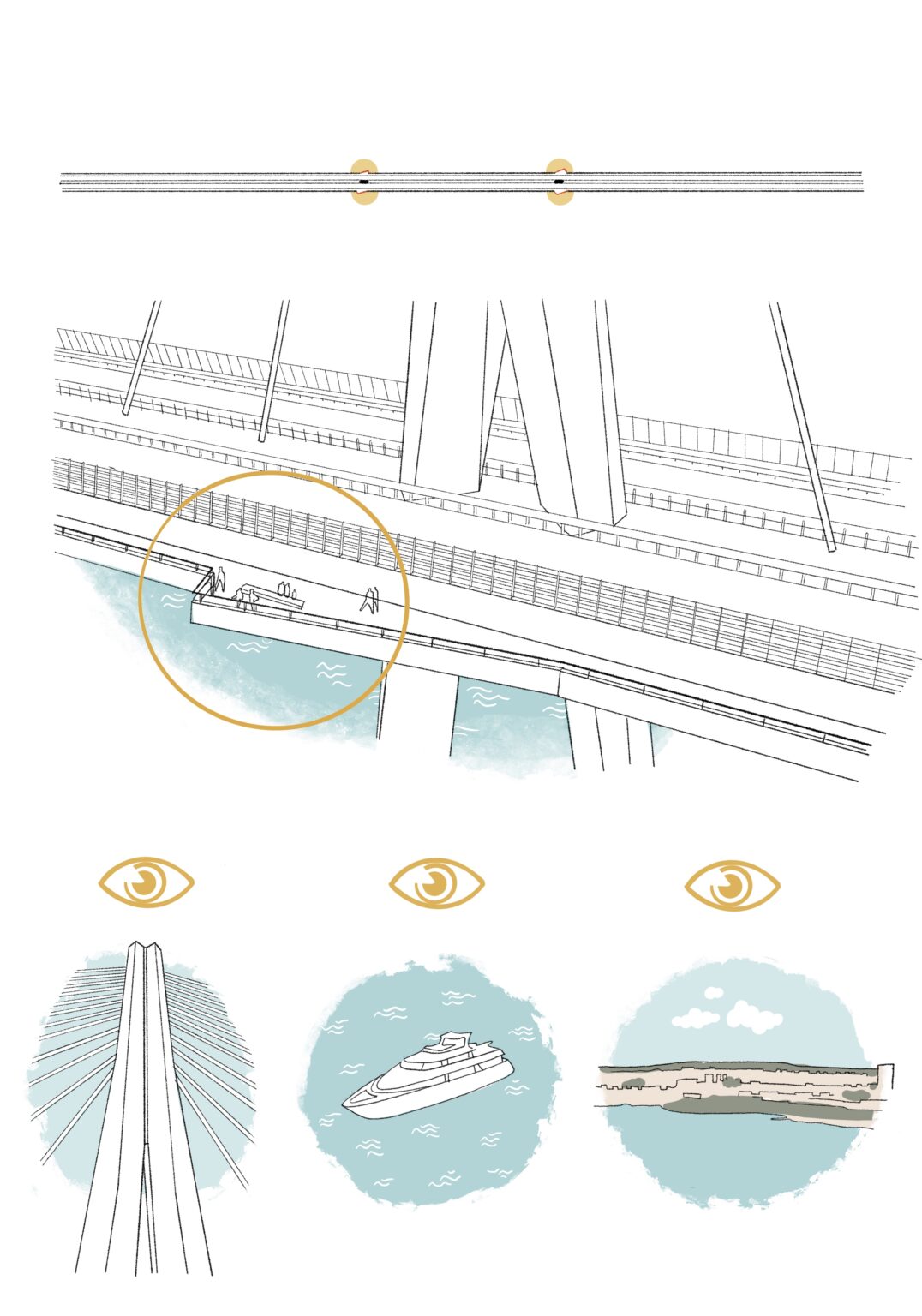 Uz četiri prometne trake, most je oblikovan i kao javni prostor iznad zaljeva. Pješačke i biciklističke staze denivelirane su ispod razine kolnika, čime su korisnici zaštićeni od buke i prometa. Staza je zamišljena kao rekreacijska „trim staza” iznad mora s četiri vidikovca koji omogućuju panoramske poglede prema gradu i zaljevu te mogu služiti kao mjesta okupljanja tijekom regata, sportskih događanja i navijačkih proslava.