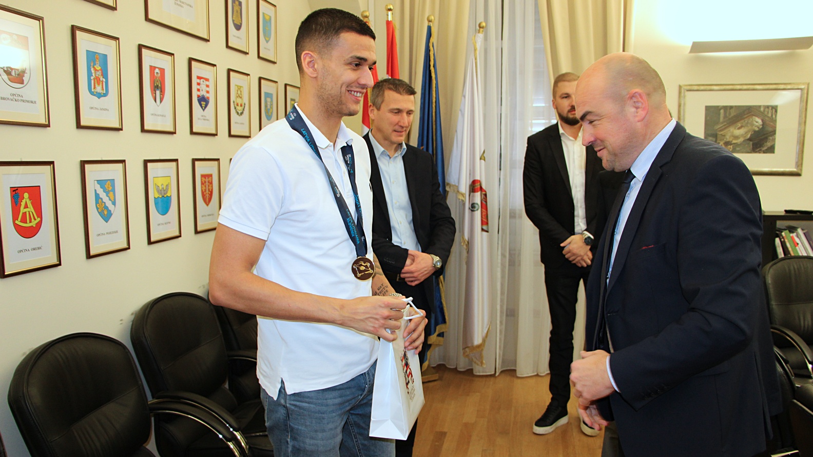 ”Veliki je ovo uspjeh za mali nogomet u našoj županiji, posebno za Marka koji je dio naše reprezentacije. Tradicija malog nogometa ovdje je velika, imamo prvoligaša i veselimo se ovakvoj medalji i svemu onome što će nam Square donijeti u budućnosti. Bilo je lijepo čuti Markove dojmove s prvenstva, a sjetili smo se u ovoj prigodi i našeg Tonija Bačića koji je utkao svoj rad u uspjeh ove reprezentacije. Mali nogomet danas je negledaniji dvoranski sport u Hrvatskoj i ovaj rezultat u tom smislu nije slučajan”, rekao je župan Pezo.