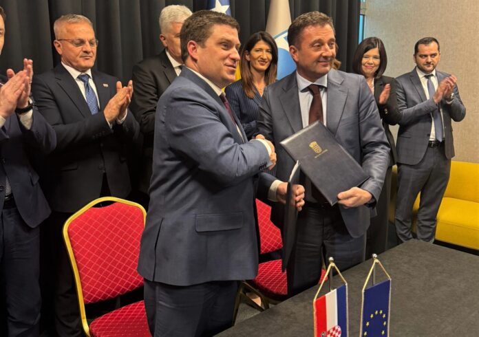 Potpredsjednik Vlade i ministar mora, prometa i infrastrukture Oleg Butković boravio je u četvrtak, 12. veljače 2026. godine u Bosni i Hercegovini, gdje je potpisao dva ugovora važna za prometnu povezanost i integraciju pograničnog područja.