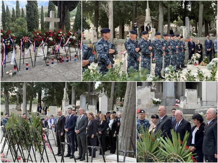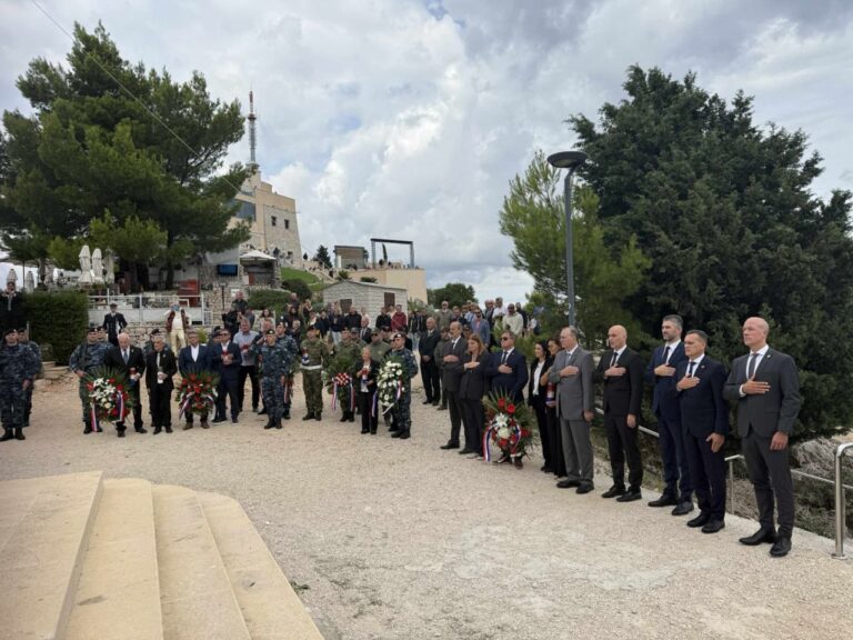 Obilježavanje je nastavljeno prigodnim programom učenika osnovnih škola u crkvi Male Braće i polaganjem vijenaca uz molitvu na Srđu.