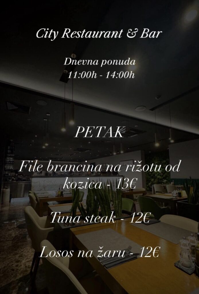 City restoran & bar, Hrvatskog crvenog križa 45, kontakt 020 301 800, ne vrše dostavu