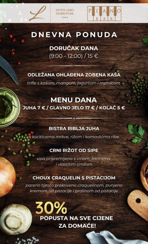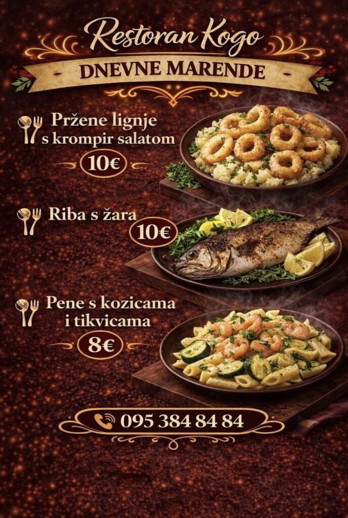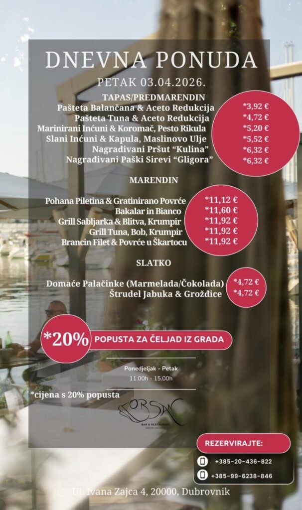 Imate ponudu dnevnih marendi, i želite ih promovirati na dubrovniknetu?! Javite se s povjerenjem na marketing@dubrovniknet.hr ili na 091 344 6000