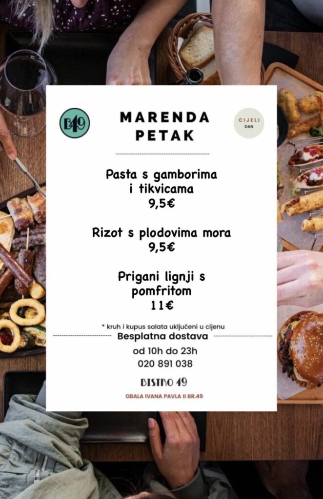Bistro 49, Obala Ivana Pavla II, br.49, kontakt 020 891 038, moguća dostava