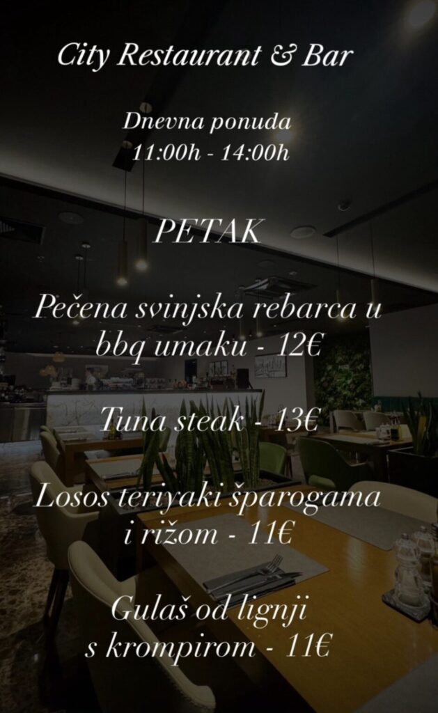 City restoran & bar, Hrvatskog crvenog križa 45, kontakt 020 301 800, ne vrše dostavu