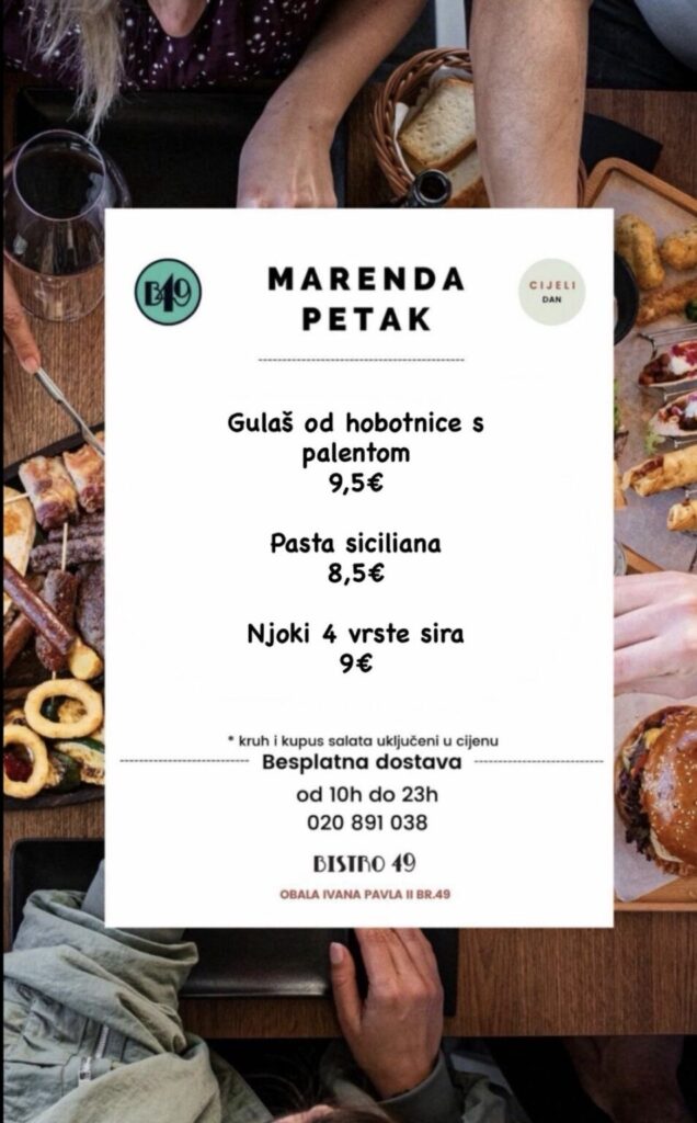 Bistro 49, Obala Ivana Pavla II, br.49, kontakt 020 891 038, moguća dostava