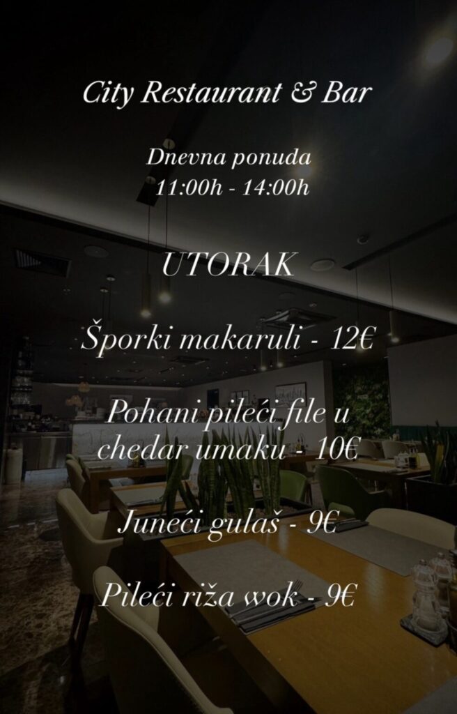 City restoran & bar, Hrvatskog crvenog križa 45, kontakt 020 301 800, ne vrše dostavu