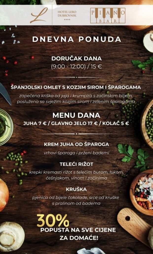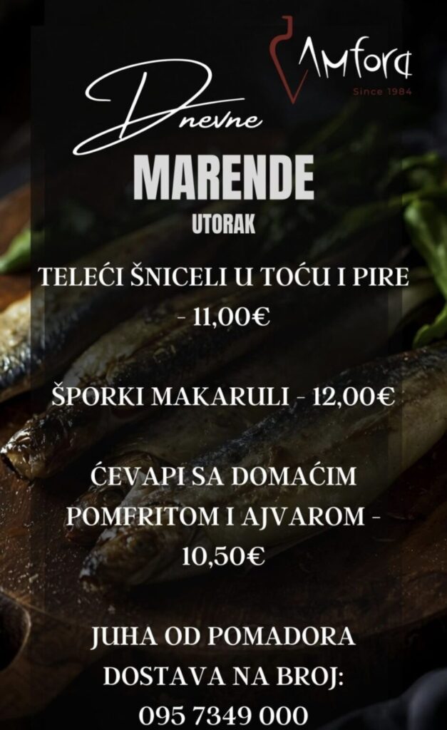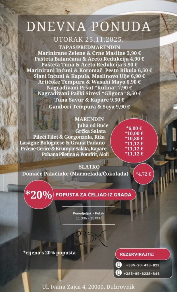 Imate ponudu dnevnih marendi, i želite ih promovirati na dubrovniknetu?! Javite se s povjerenjem na marketing@dubrovniknet.hr ili na 091 344 6000
