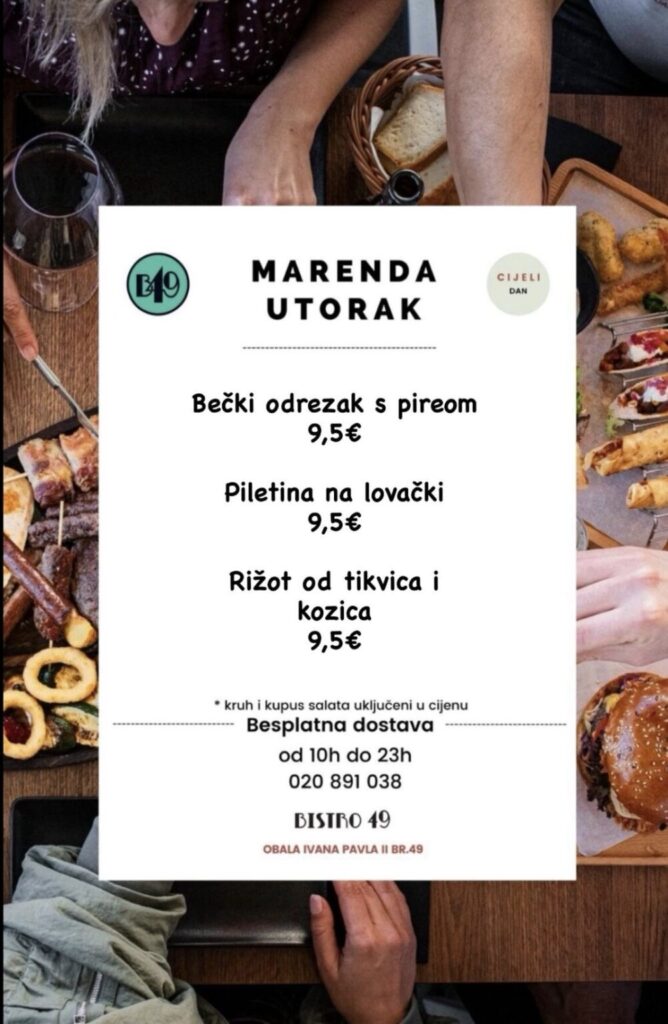 Bistro 49, Obala Ivana Pavla II, br.49, kontakt 020 891 038, moguća dostava