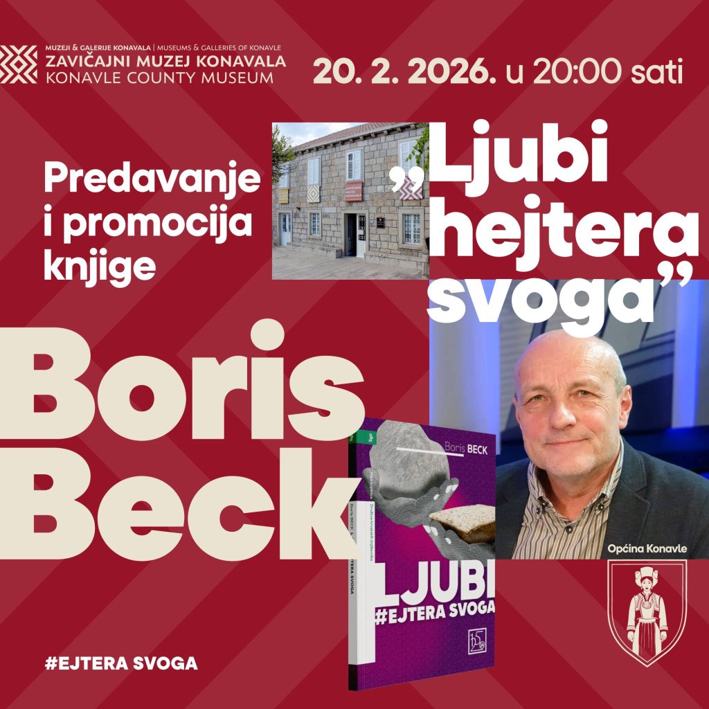 U petak 20. veljače s početkom u 20 sati u Zavičajnom muzeju u Čilipima bit će upriličeno predavanje i promocija knjige Borisa Becka ”Ljubi hejtera svoga”.
