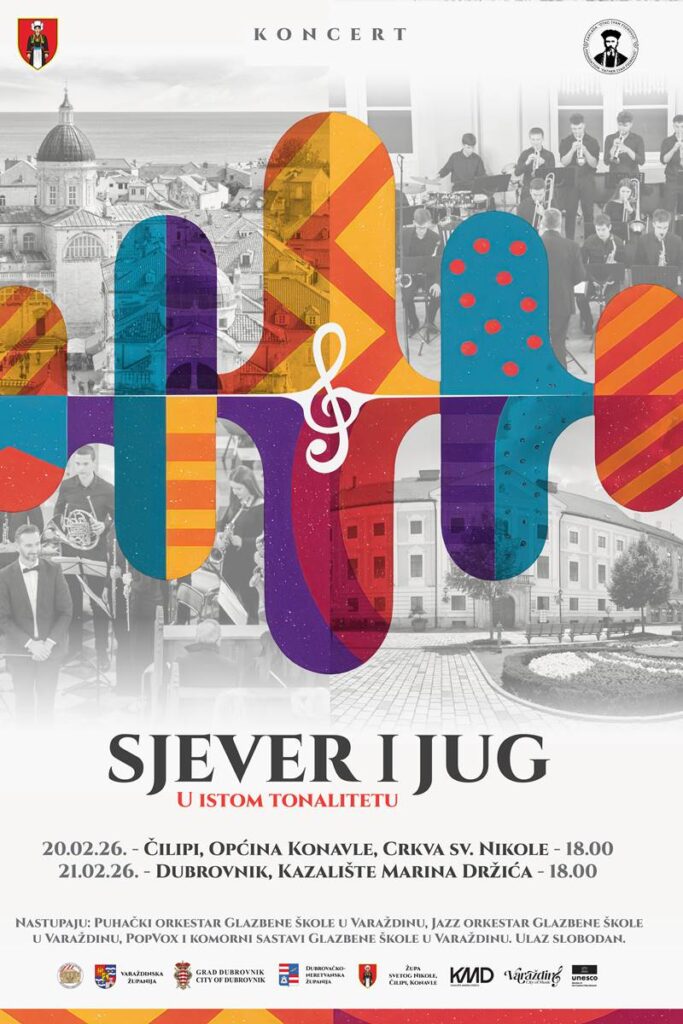 Projekt „Sjever i jug u istom tonalitetu“ u veljači 2026. godine povezat će hrvatski sjever i jug kroz koncerta u Čilipima, na kojem će nastupiti učenici i ansambli Glazbene škole u Varaždinu. Koncert će se održati u petak, 20. veljače 2026. u crkvi sv. Nikole u Čilipima s početkom u 18 sati, a ulaz je slobodan!