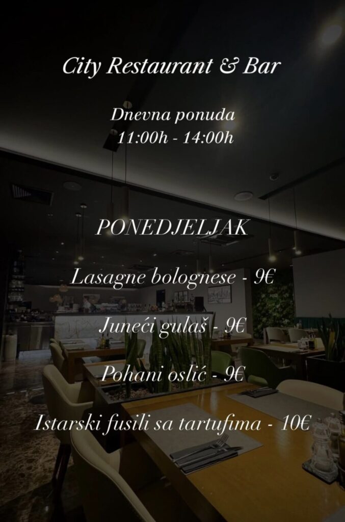City restoran & bar, Hrvatskog crvenog križa 45, kontakt 020 301 800, ne vrše dostavu
