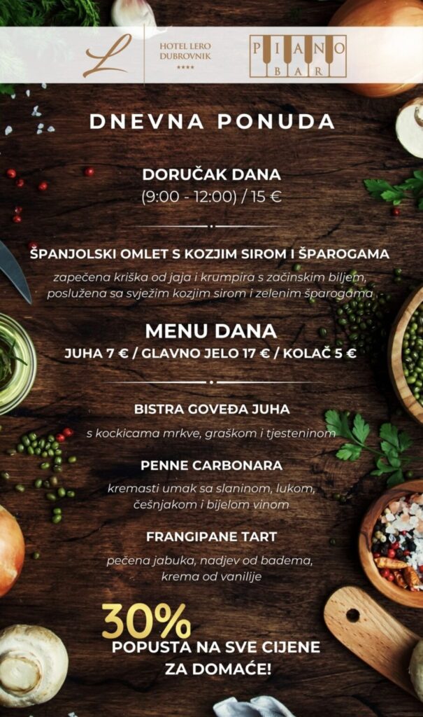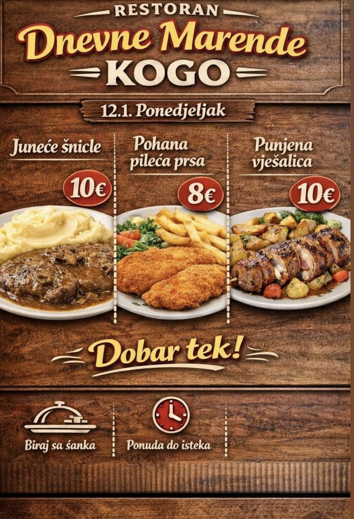 Imate ponudu dnevnih marendi, i želite ih promovirati na dubrovniknetu?! Javite se s povjerenjem na marketing@dubrovniknet.hr ili na 091 344 6000