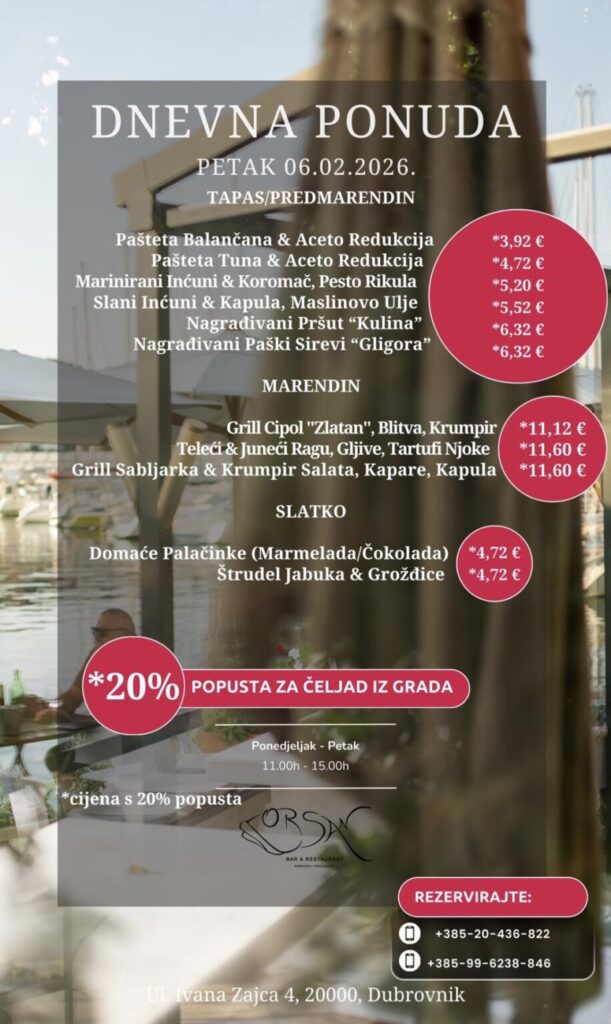 Imate ponudu dnevnih marendi, i želite ih promovirati na dubrovniknetu?! Javite se s povjerenjem na marketing@dubrovniknet.hr ili na 091 344 6000