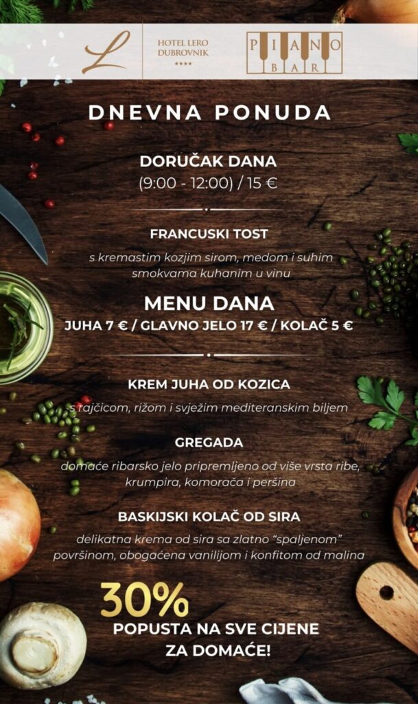 Piano bar – hotel Lero, Iva Vojnovića 14, Dubrovnik, kontakt 020 341 432, nema dostave