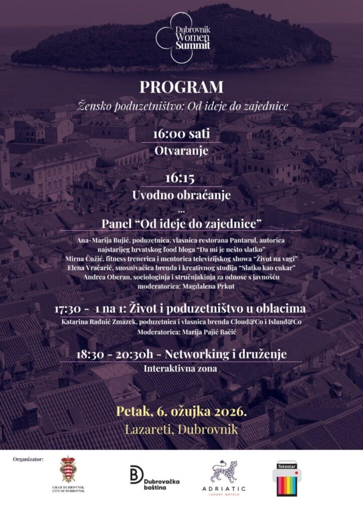 Nakon iznimno uspješnog prošlogodišnjeg izdanja, u prvom tjednu ožujka u Lazarete stižu inspirativne poduzetnice koje otvaraju temu snage zajednice u poslovanju. Povodom Dana žena, u petak 6. ožujka 2026. godine održava se Dubrovnik Women Summit, događaj koji u središte stavlja žene poduzetnice, njihovu vidljivost, međusobnu podršku i izgradnju snažne poslovne zajednice.