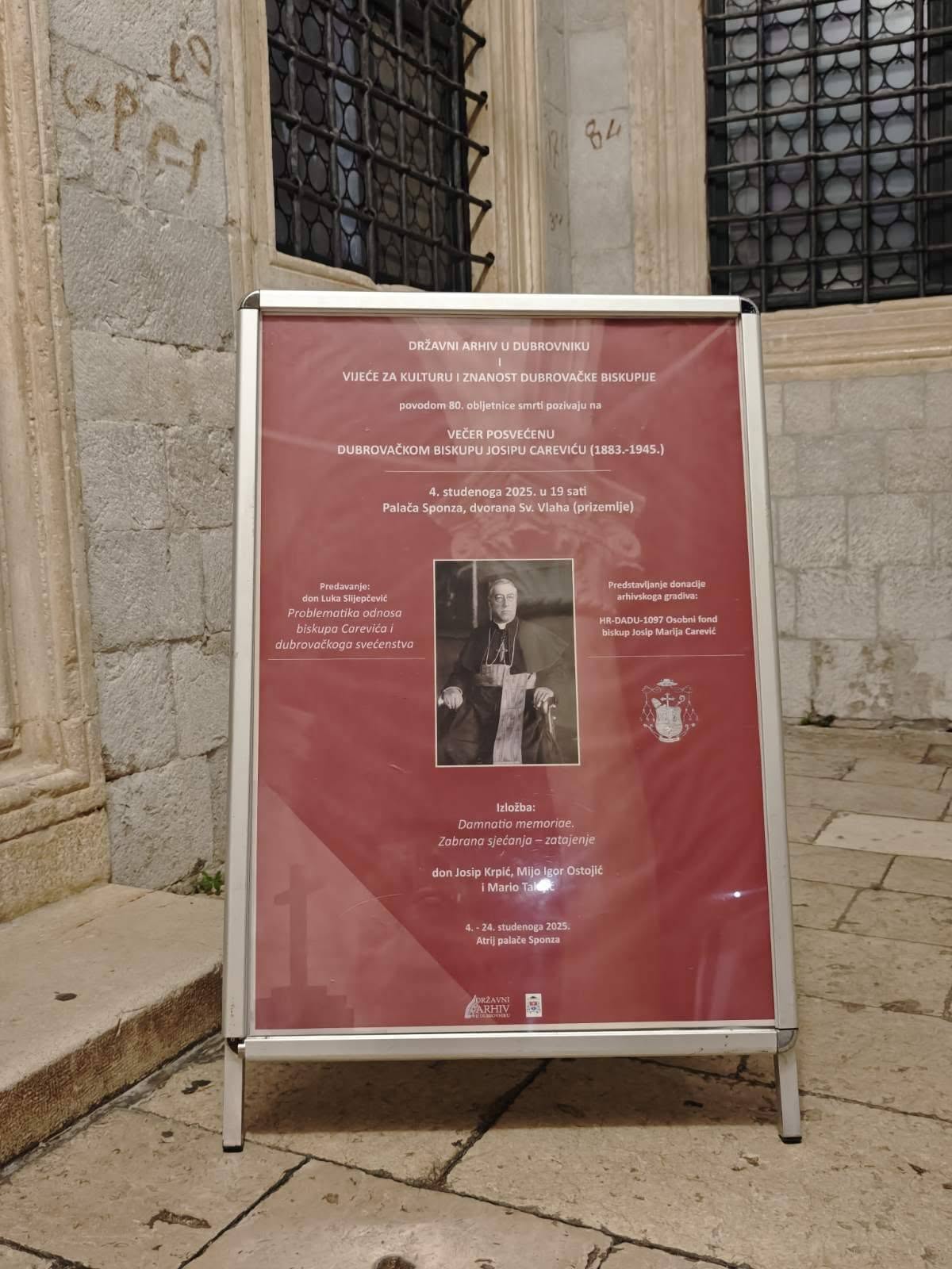 Državni arhiv u Dubrovniku i Vijeće za kulturu i znanost Dubrovačke biskupije sinoć su organizirali „Večer posvećenu dubrovačkom biskupu Josipu Mariji Careviću (1883.-1945.)” povodom 80. obljetnice njegove mučeničke smrti kojoj se pridružio i Preuzvišeni otac biskup, Roko Glasnović i počastio nas svojom nazočnošću.
