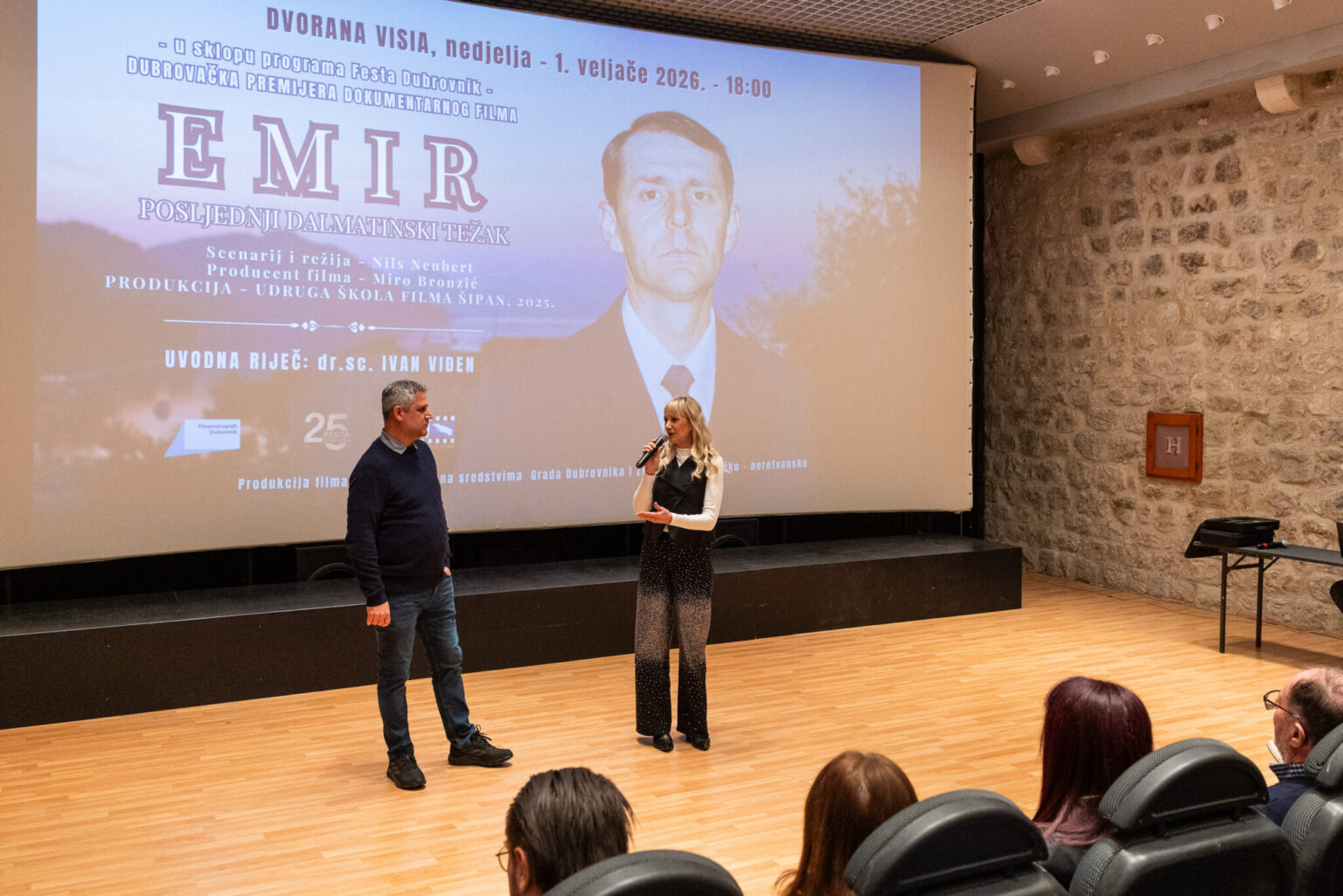 U prepunoj kino dvorani Visia, u sklopu programa 25. Feste Dubrovnik 2026 te u suradnji s Kinematografima Dubrovnik, sinoć je održana dubrovačka premijera filma „Emir – posljednji dalmatinski težak“.