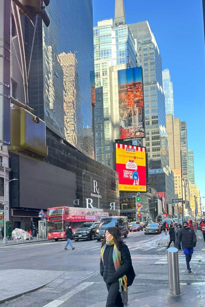 Od 2. do 8. veljače 2026. godine Turistička zajednica grada Dubrovnika provela je promotivnu kampanju na jednoj od najpoznatijih svjetskih oglašivačkih lokacija – Times Square u New Yorku. Kampanja je realizirana na dva velika digitalna ekrana smještena na križanju Broadway i Seventh Avenue (48th Street & Broadway), u samom srcu Times Squarea. Ova iznimno vidljiva lokacija, prepoznata kao jedna od najfotografiranijih i najposjećenijih točaka u gradu, vidljiva je s više od deset gradskih blokova udaljenosti te ostvaruje više od 5,9 milijuna tjednih impresija. Time se Dubrovnik predstavio milijunima turista i lokalnih posjetitelja, uz dodatnu vrijednost organske vidljivosti putem društvenih mreža. Dinamični vizuali i atraktivne panorame Grada predstavljaju Dubrovnik kao destinaciju bogate povijesti, kulture i jedinstvenog mediteranskog doživljaja.