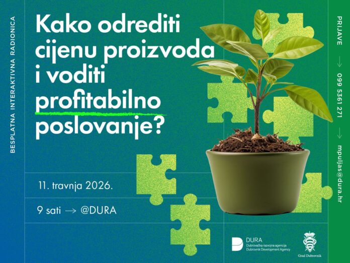 Prijavite se na radionicu “Kako odrediti cijenu proizvoda i voditi profitabilno poslovanje” koju za Vas organizira DURA u okviru Startup akademije. Radionica će se održati u subotu 11. travnja 2026. godine u prostorijama DURA-e, na adresi Branitelja Dubrovnika 15, 20 000 Dubrovnik s početkom u 9 sati. Radionica će trajati do 17 sati.