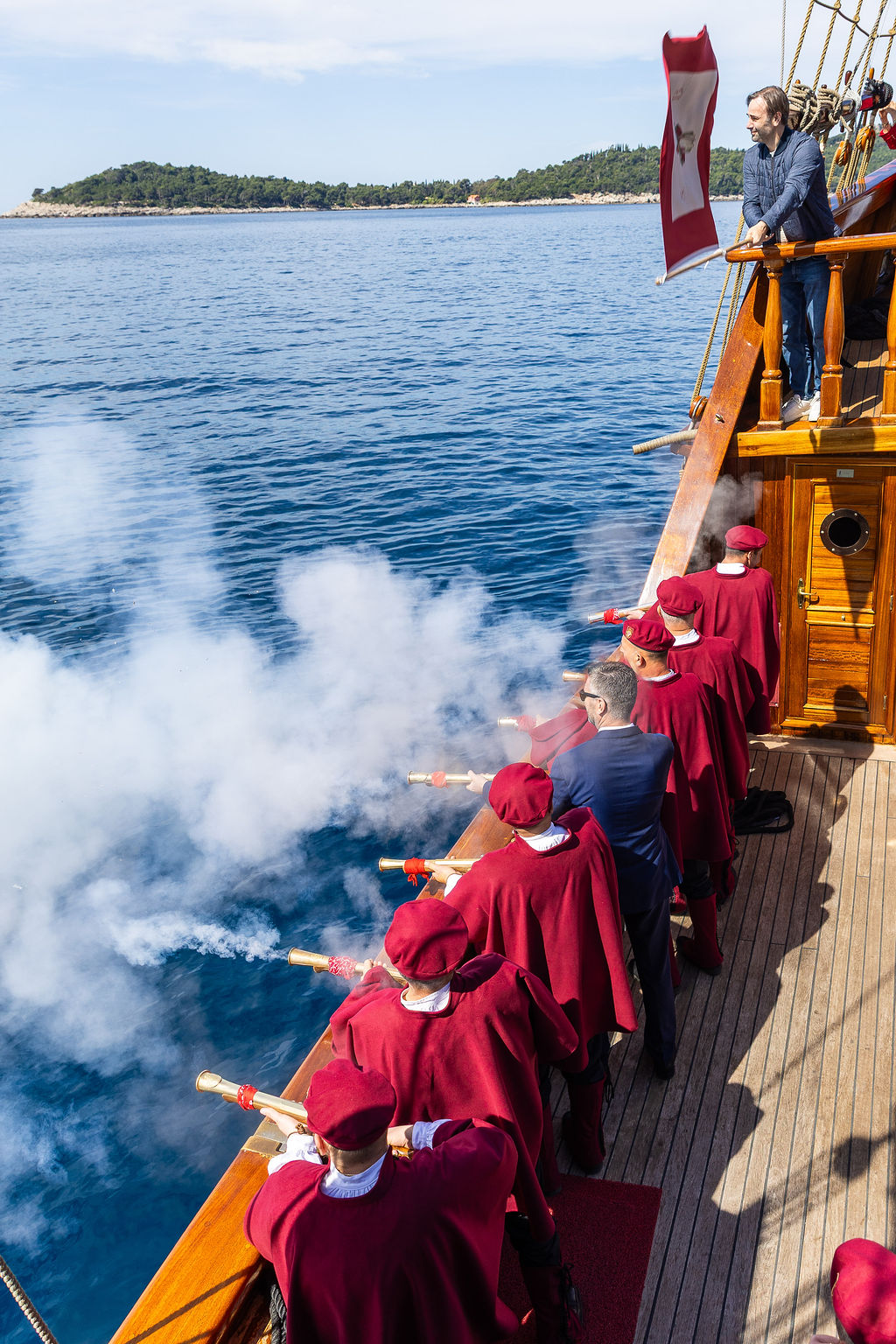 Gradonačelnik Dubrovnika g. Mato Franković simbolično je označio početak regate tradicionalnim pucnjem s dubrovačkim trombunjerima, dok je proslavljeni hrvatski rukometaš Ivano Balić spuštanjem barjaka Sv. Vlaha dao znak za start prvog plova.
