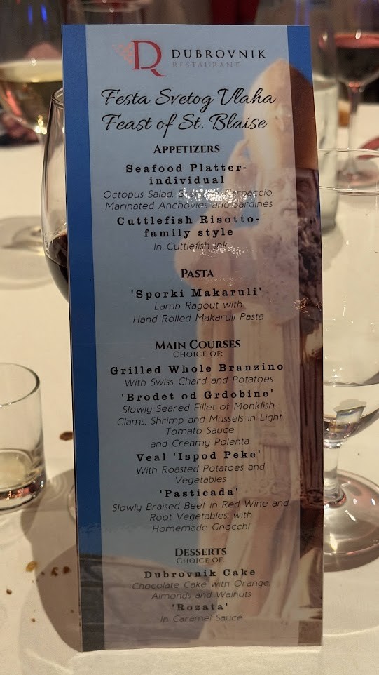 I dok su se u Gradu puštale bijele golubice, dubrovačka zajednica u New Yorku okupila se u restoranu “Dubrovnik” kako bi dostojanstveno i uz pjesmu proslavila blagdan svoga zaštitnika. Uz miris dubrovačkih delicija i zvukove domaće pjesme, barjak sv. Vlaha vijorio se s ponosom kao i na Stradunu.