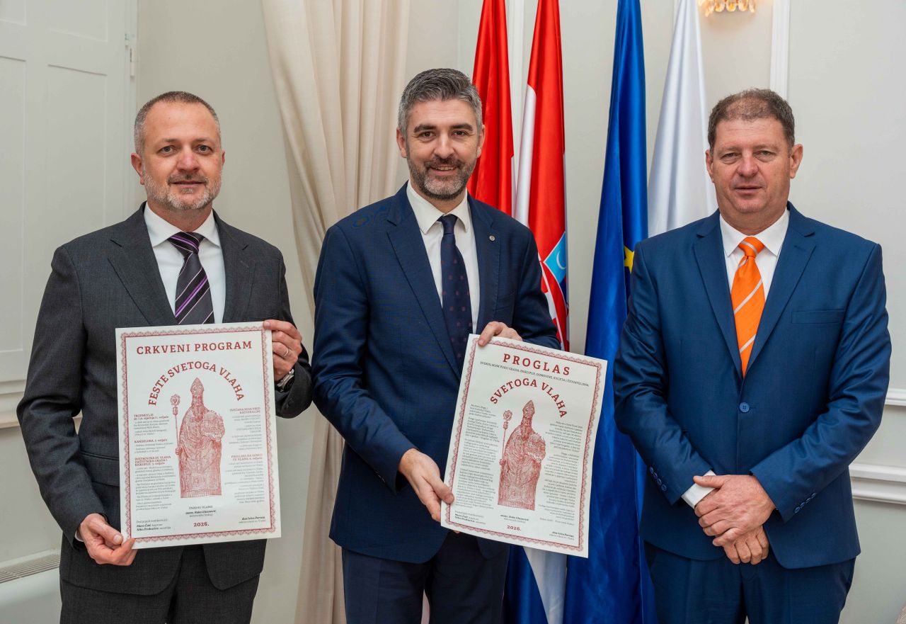 U pratnji rektora crkve sv. Vlaha don Ivice Pervana, festanjuli su gradonačelniku uručili Proglas na kojem stoji zapisano: „Neka se u dane Feste 2026. sjedine vapaji molitava i pjesme naroda, barjaci bratstava i bratovština, udruga i društava, te mirisi svijeća i zvon zvona naših crkava, kako bi naš Grad još jednom posvjedočio svoju vjeru i vječno geslo: „Libertas pod barjakom sv. Vlaha!“