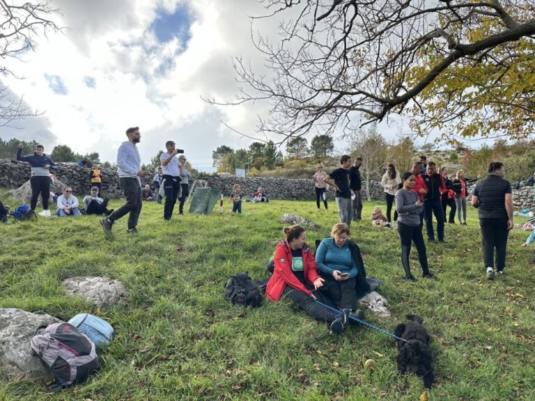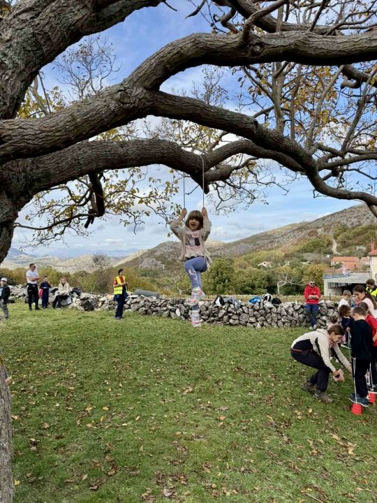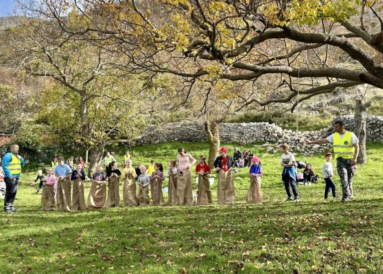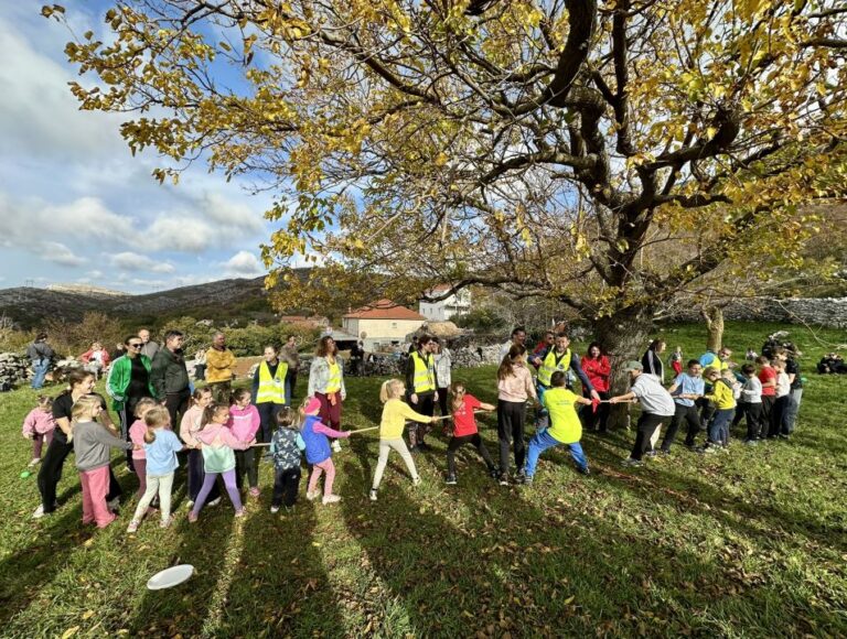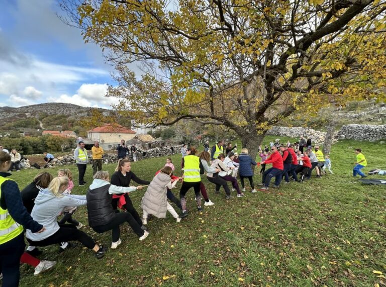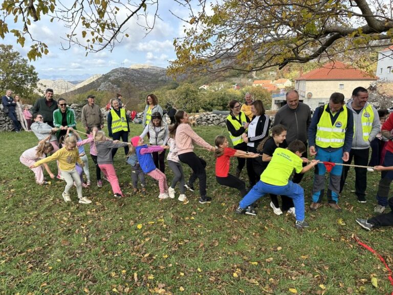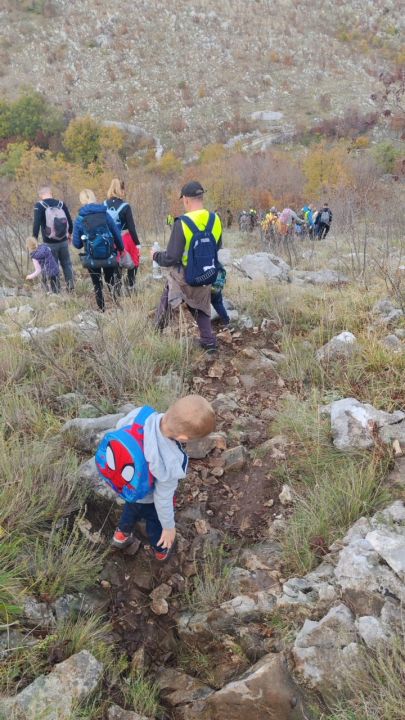 A dan za poželjeti. Sunčano i bez imalo vjetra. Tek pokoji oblačić za što bolju dekoraciju na fotografijama. Laganim korakom tako smo krenuli na kružnu turu od Veljeg dola do 701 metar visokog Stražišća. Dječica su pokazala iznimnu volju za šetnju prema vrhu, a kondicije i snage tek je rijetkima nedostajalo. Tu su roditeljska naručja ili tek ruka pomagali. Polusatni predah na vrhu, fotografiranje s pogledom na Sniježnicu i Orjen, na Konavle, Župu i Grad – i krenuli smo se spuštati drugom stranom brda. Iako je staza bila mokra i na mjestima skliska, najmlađim planinarima taj izazov nije bio naporan. Uspješno smo se spustili na makadamsku cestu i njome krenuli natrag u Velji do. Do livade koju nam je za igre i zabavu ustupio gospar Jako Đurković. A na livadi dječica razigrana kao da nisu ni metra propješačila. A ne dva kilometra po planinskim putevima. Utrke u vrećama, hodanje na štulama, a tek potezanje konopa. Oko njega su se okupili svi. I djevojčice i dječaci i mame i tate. Dok su djevojčice bile uspješnije od svojih vršnjaka, tate se, možda taktički time pogriješivši, nisu dale mamama. Svakako, smijeha pritom i zabave nije nedostajalo.