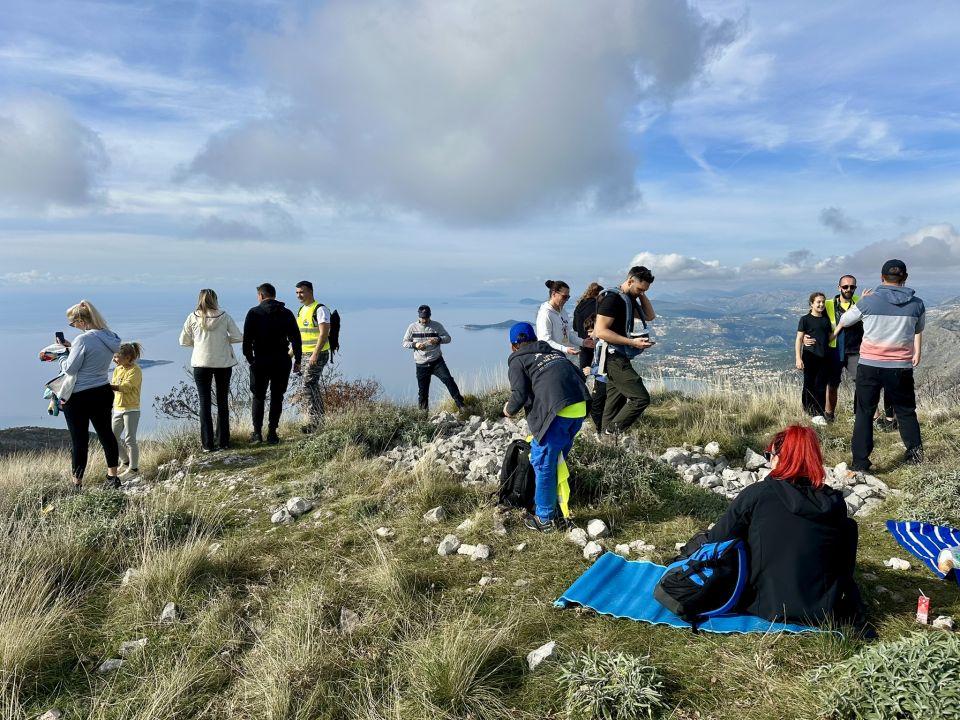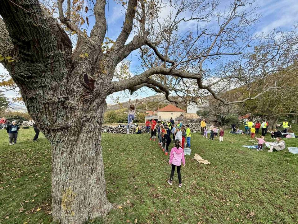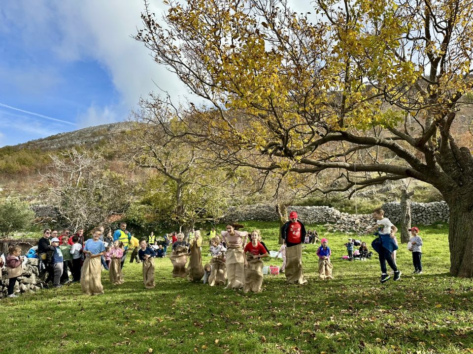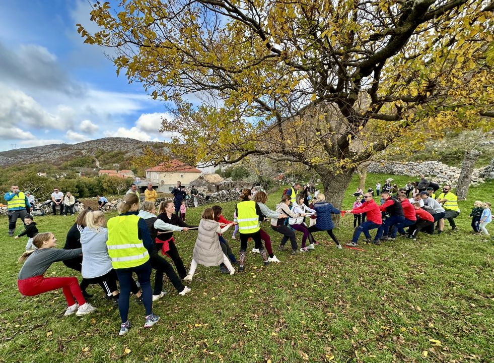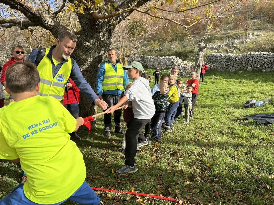 A dan za poželjeti. Sunčano i bez imalo vjetra. Tek pokoji oblačić za što bolju dekoraciju na fotografijama. Laganim korakom tako smo krenuli na kružnu turu od Veljeg dola do 701 metar visokog Stražišća. Dječica su pokazala iznimnu volju za šetnju prema vrhu, a kondicije i snage tek je rijetkima nedostajalo. Tu su roditeljska naručja ili tek ruka pomagali. Polusatni predah na vrhu, fotografiranje s pogledom na Sniježnicu i Orjen, na Konavle, Župu i Grad – i krenuli smo se spuštati drugom stranom brda. Iako je staza bila mokra i na mjestima skliska, najmlađim planinarima taj izazov nije bio naporan. Uspješno smo se spustili na makadamsku cestu i njome krenuli natrag u Velji do. Do livade koju nam je za igre i zabavu ustupio gospar Jako Đurković. A na livadi dječica razigrana kao da nisu ni metra propješačila. A ne dva kilometra po planinskim putevima. Utrke u vrećama, hodanje na štulama, a tek potezanje konopa. Oko njega su se okupili svi. I djevojčice i dječaci i mame i tate. Dok su djevojčice bile uspješnije od svojih vršnjaka, tate se, možda taktički time pogriješivši, nisu dale mamama. Svakako, smijeha pritom i zabave nije nedostajalo.