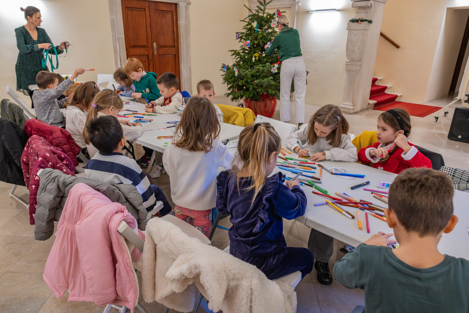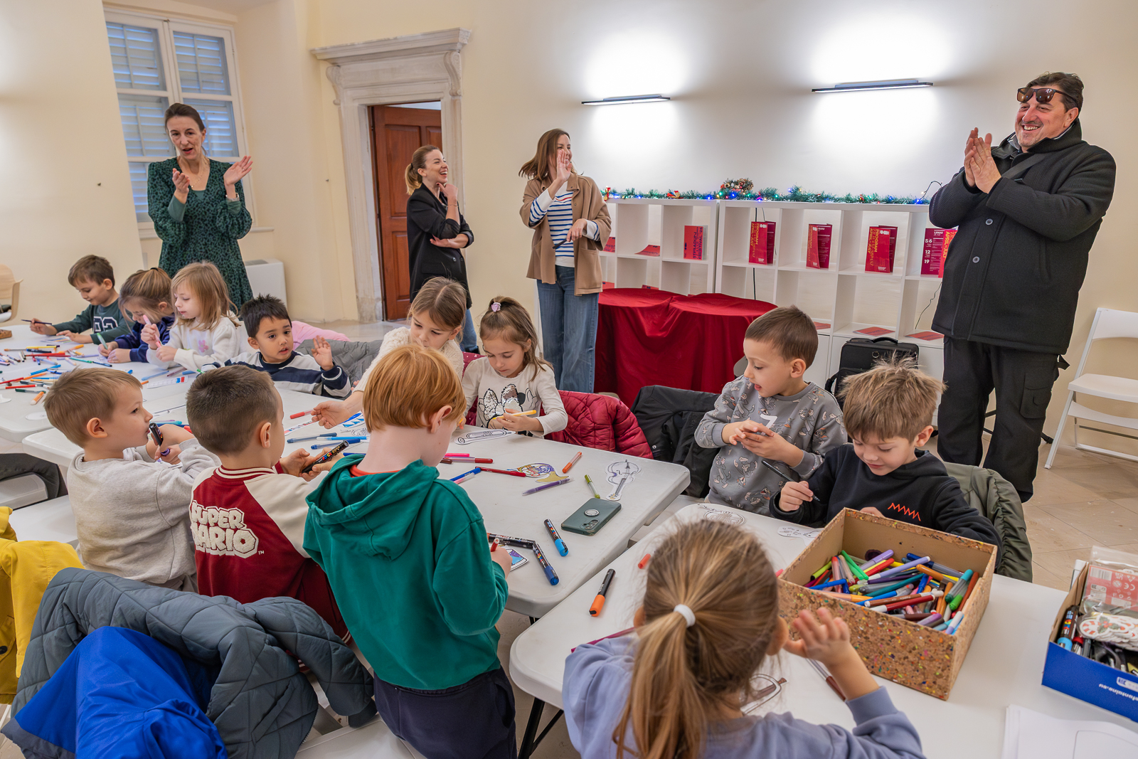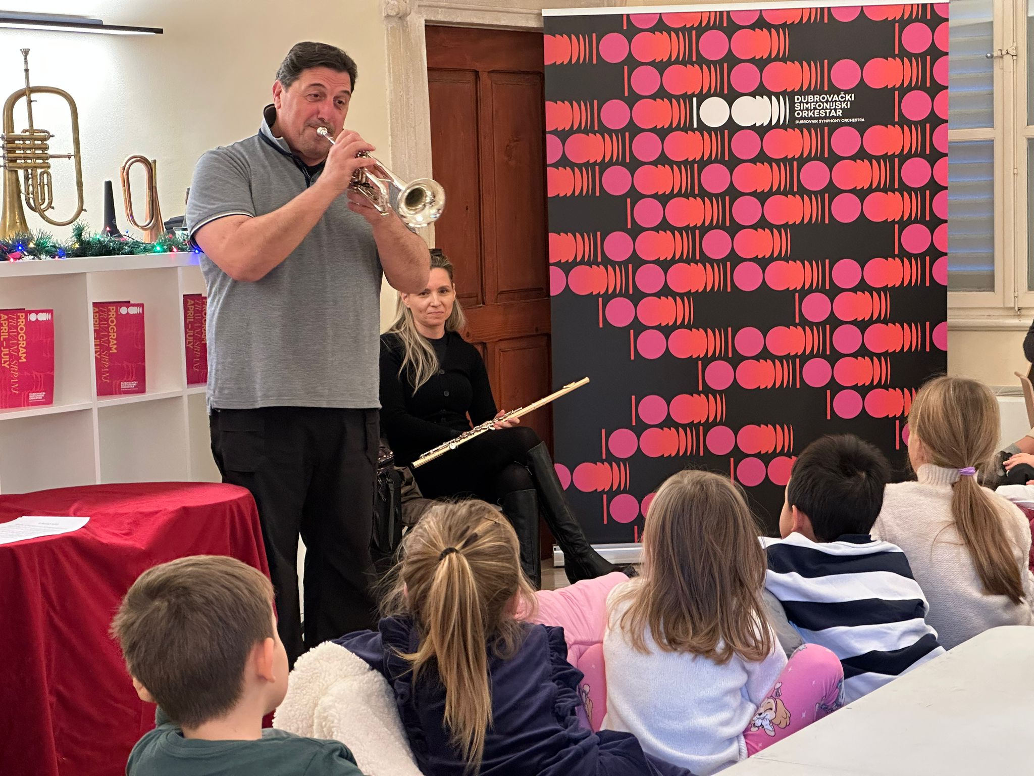 No, prije nego što su se dječica bacila na posao s bojanjem i ukrašavanjem, članovi Dubrovačkog simfonijsko orkestra upoznali su ih s instrumentima, pa su zajedno zapjevali, čak i kolendali! Violončelistica Mihaela Martinović, violinistica Iva Vukić, flautistica Antonea Gjaja Kocković, klarinetistica Tana Michl, trubač Džemal Cakić i rogist Martin Hrćan pričali su im o svojim instrumentima, potom su svi zajedno pjevali Zvončiće, Dubrovačku kolendu, Kad si sretan, a onda su mališani ono što su čuli, pretočili u boje!