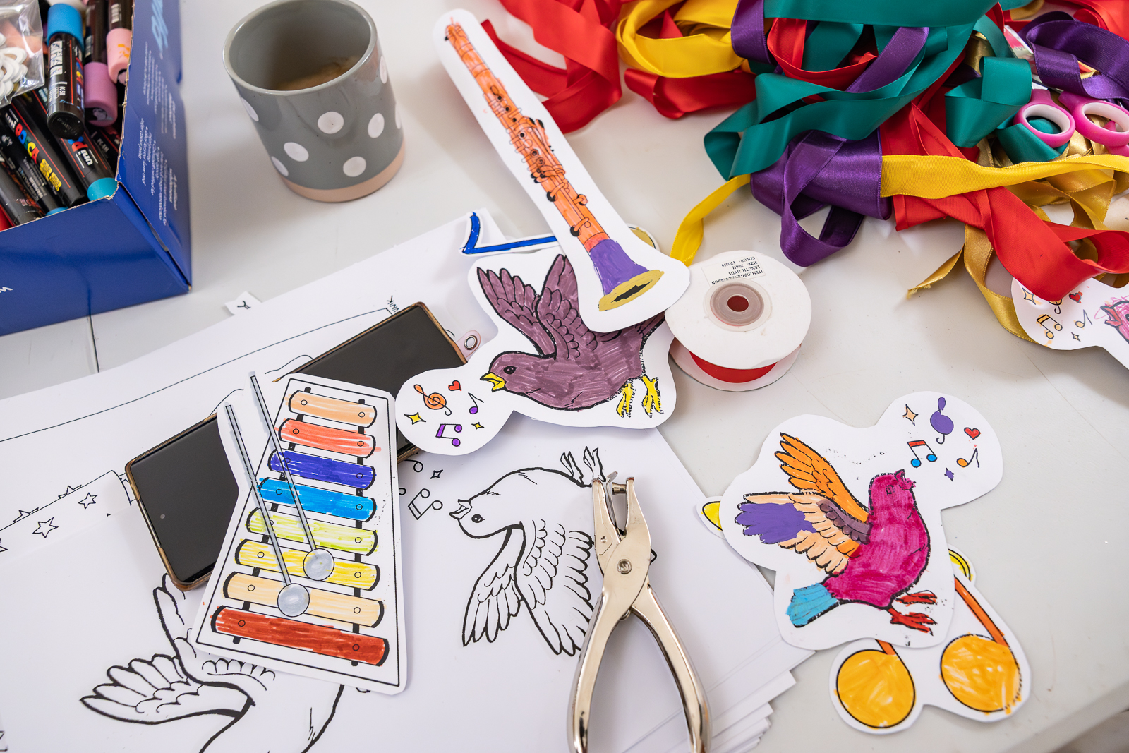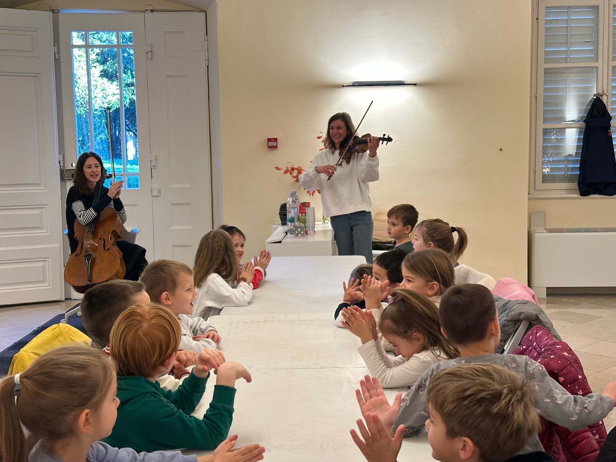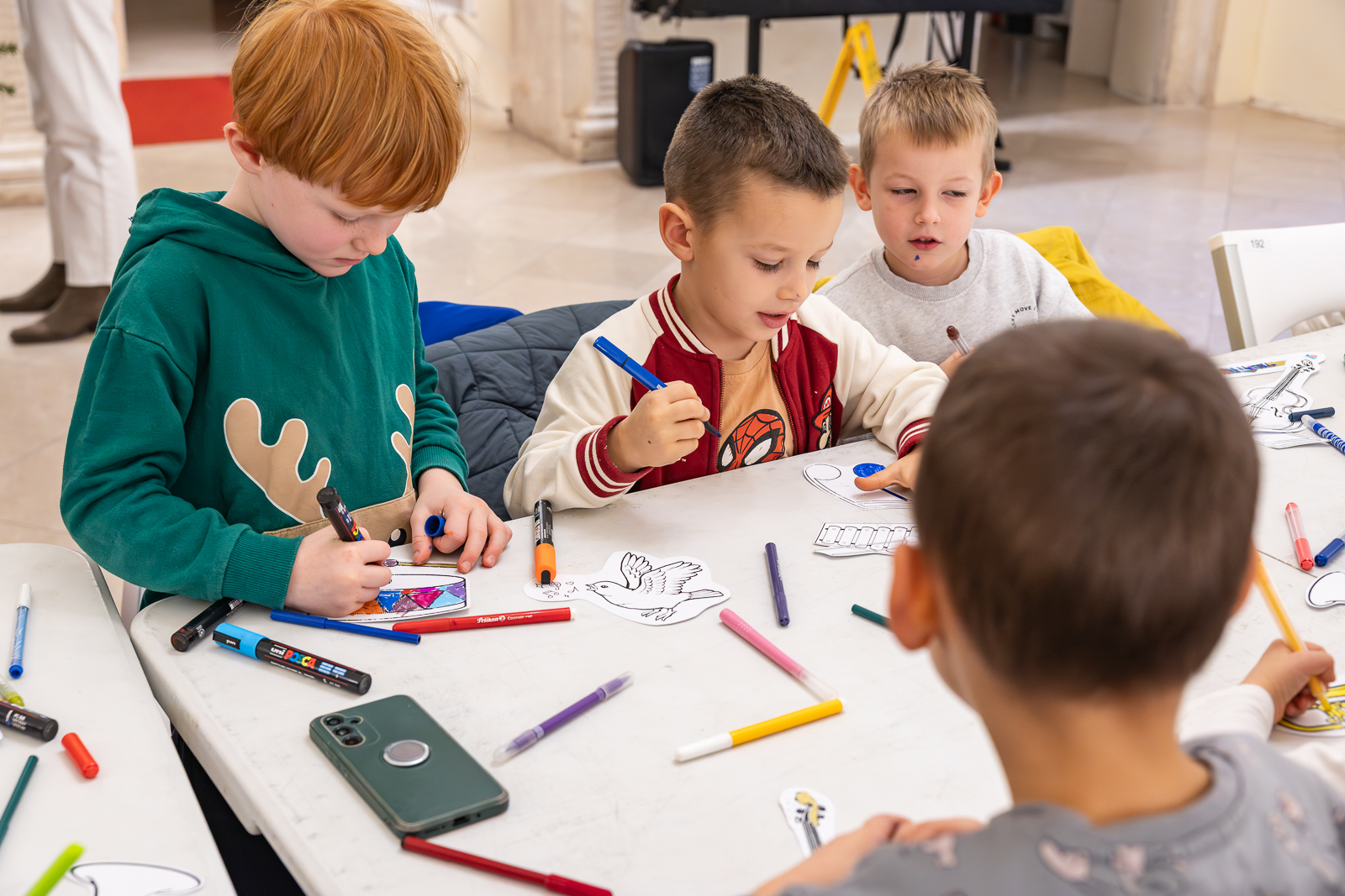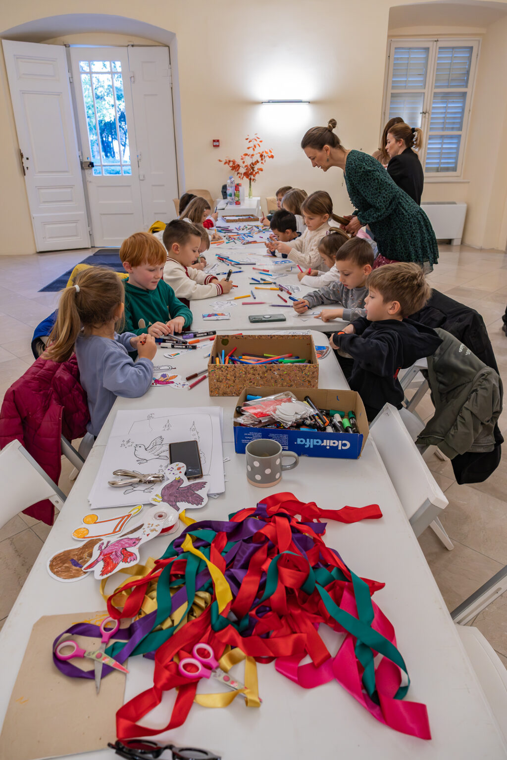 No, prije nego što su se dječica bacila na posao s bojanjem i ukrašavanjem, članovi Dubrovačkog simfonijsko orkestra upoznali su ih s instrumentima, pa su zajedno zapjevali, čak i kolendali! Violončelistica Mihaela Martinović, violinistica Iva Vukić, flautistica Antonea Gjaja Kocković, klarinetistica Tana Michl, trubač Džemal Cakić i rogist Martin Hrćan pričali su im o svojim instrumentima, potom su svi zajedno pjevali Zvončiće, Dubrovačku kolendu, Kad si sretan, a onda su mališani ono što su čuli, pretočili u boje!