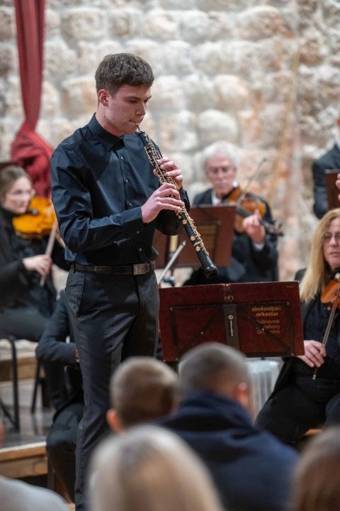 Na sinoćnjem koncertu s orkestrom su kao solisti nastupili Matea Babić, sopran; Ema Bulum, flauta; Mihaela Jakimova, flauta; Erika Kesovija, klarinet; Đivo Sršen, oboa; Ivano Urljević, kontrabas; Tadej Vlašić, violončelo; Gabriela Đanić, violončelo, Sofija Glušac, violina i Neša Kosović, violina.