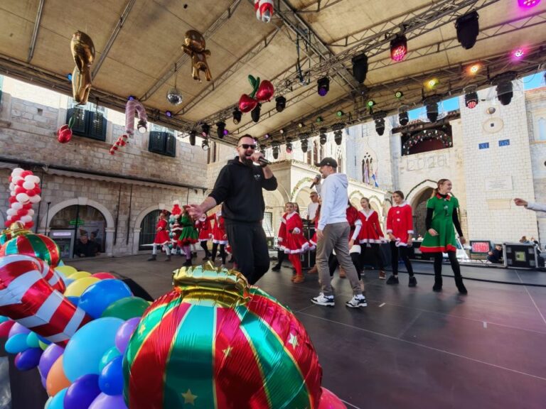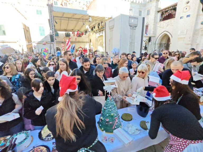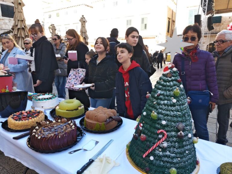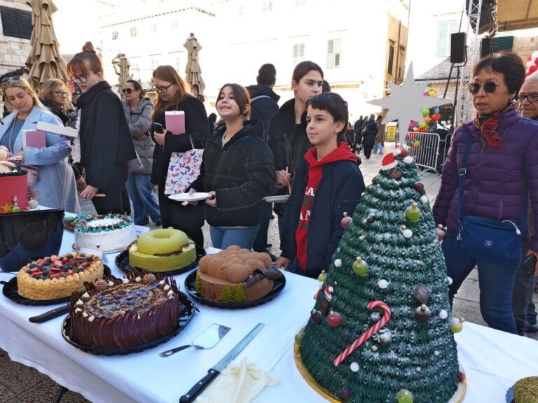 Nakon kupnje i degustacije slastica, sve prisutni na Stradunu, pogotovo oni najmlađi zabavili su se uz koncert Domenice i Ante Casha.