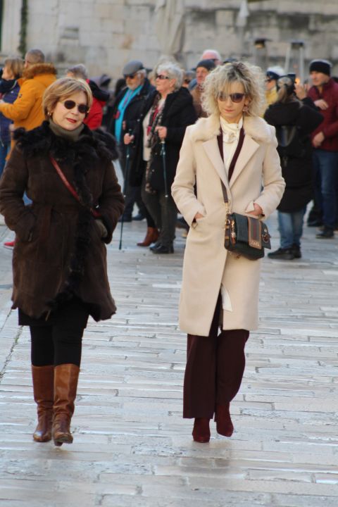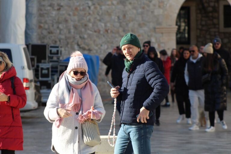 Prekrasan, pravi prosinački dan izmamio je danas brojne Dubrovčane, ali i brojna naše goste na Stradun. Dobro raspoloženi, veseli i nisu dopustili da ih hladnije vrijeme omete i da ne naprave posljednji đir Stradunom u 2025. U skladu s temperaturom u prvi su plan danas došle jakne, kaputi, bunde, kape.