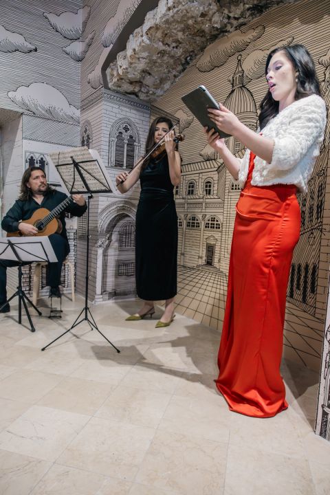 Posebnu emocionalnu notu i autentičnost večeri dao je glazbeni nastup komornog trija. Sopranistica Valentina Elizabeta Šilje, uz pratnju Dore Kamber na violini i Pera Škobelja na gitari, izvela je skladbu „Te Deum Laudamus“ („Tebe Boga hvalimo“) skladatelja Tomása Luisa de Victorije. Izbor ove skladbe nije bio slučajan jer se u spomenutoj ispravi navodi ovaj drevni hvalospjev kao dio ceremonije preuzimanja Držićeve nove dužnosti. Zvuci koji su nekada pratili Držića na novom životnom putu ponovno su ispunili prostor njegova Doma, stvarajući snažnu poveznicu između prošlosti i sadašnjosti.