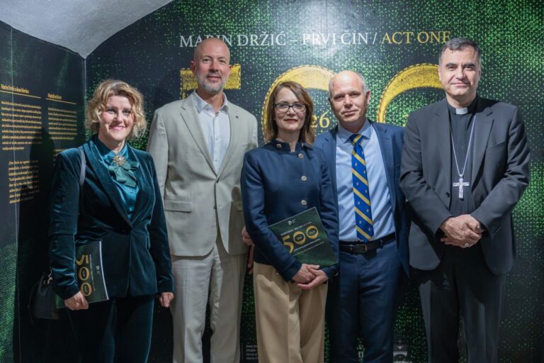 Jučer je u prostorima Doma Marina Držića svečano otvorena izložba „Marin Držić – prvi čin“, kojom je obilježena velika obljetnica – 500 godina od prvog spomena najvećeg hrvatskog komediografa u pisanoj povijesti (1526. – 2026.).