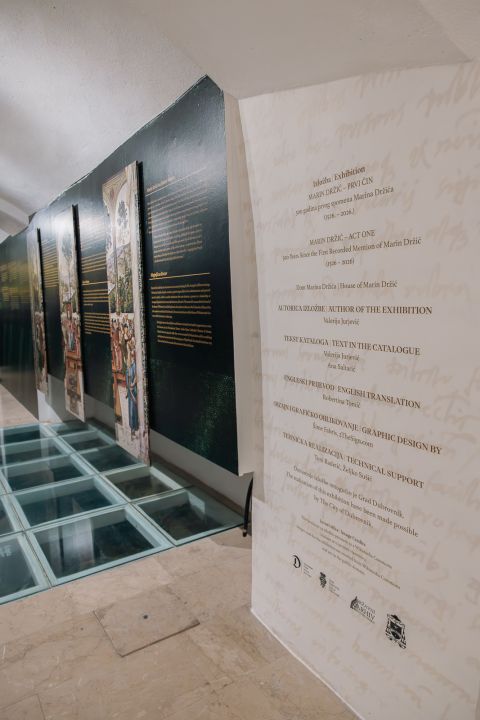 Izložba „Marin Držić – prvi čin“ podsjeća nas na Držića izvan kazališnih kulisa, kao člana katoličkog klera, te je kroz suradnju s Državnim arhivom u Dubrovniku javnosti približena ova važna, a ponekad zanemarena strana života našeg dum Marina. Oživljavanje sjećanja u prostoru nekadašnje kripte crkve čiji je bio rektor dodatno naglašava neraskidivu vezu između Držića i njegova Grada.