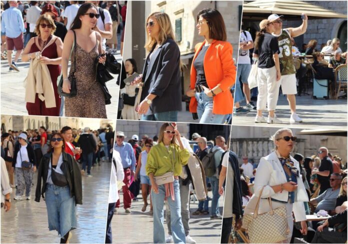FOTO: Stradun je jutros bio pun, a moda raznovrsna – od “golih leđa” do kožnih jakni