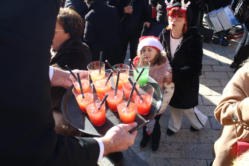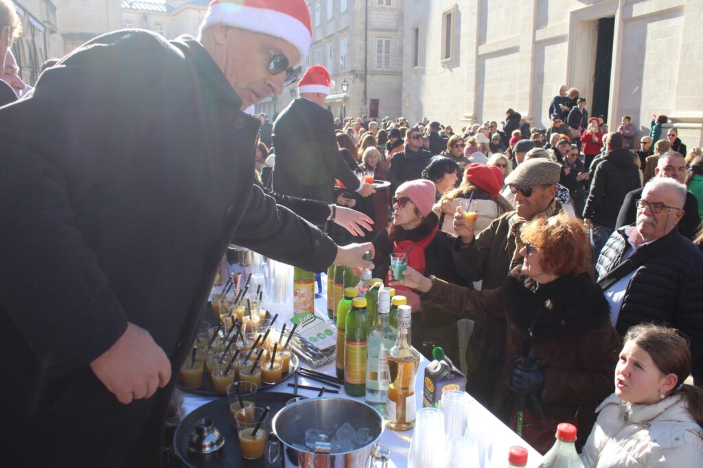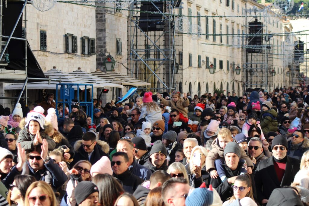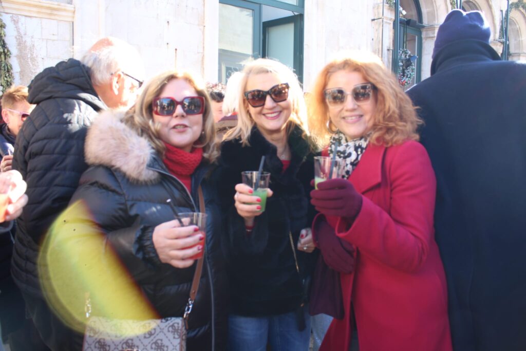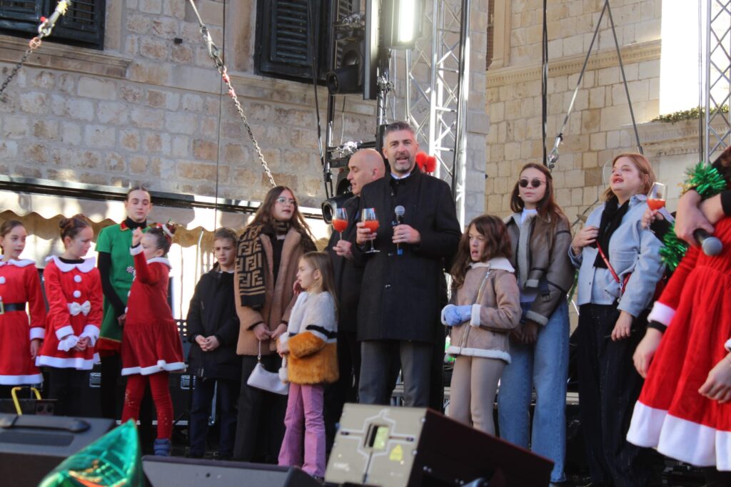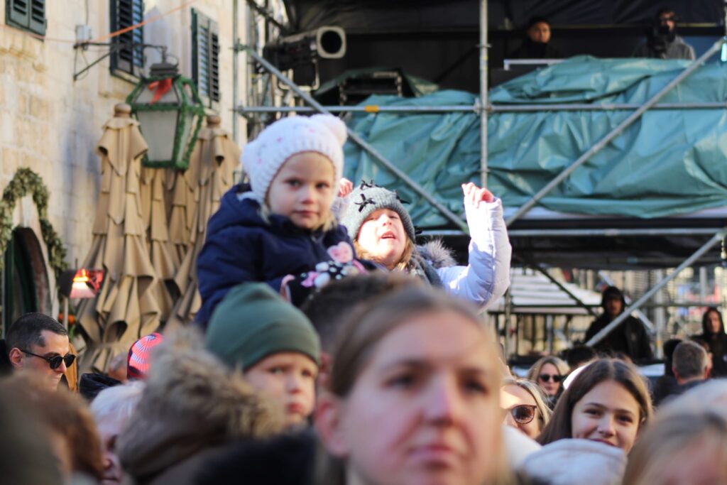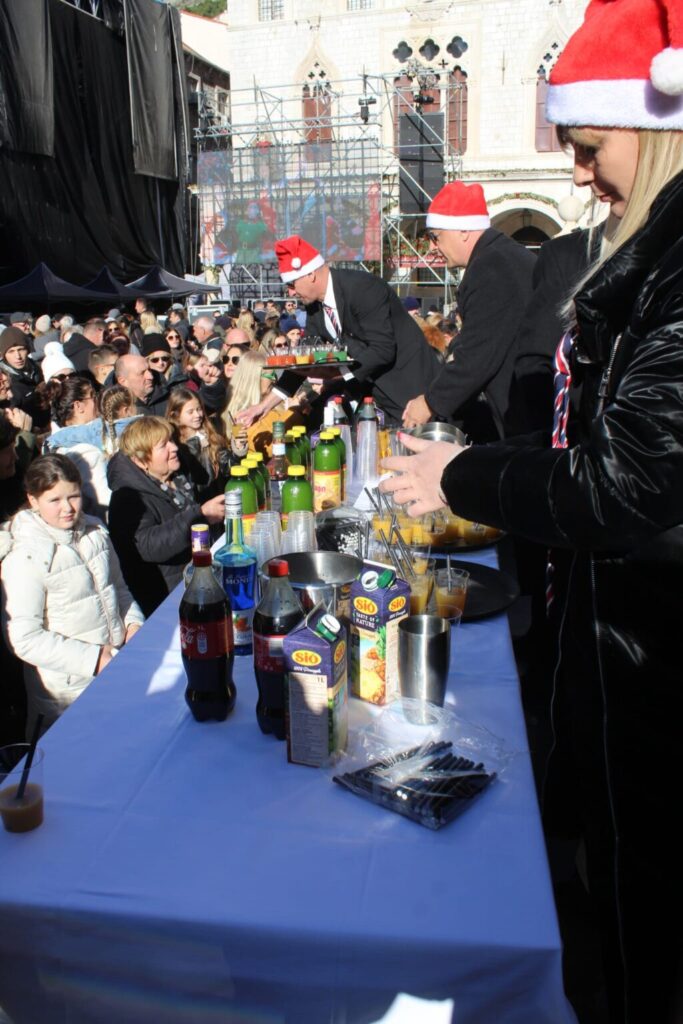 Točno uz podne, uz kolendu mališanima, njihovim roditeljima i svima okupljenima na Stradunu, novu, 2026. godinu čestitao je gradonačelnik Franković, a potom su novogodišnji koktel poslužili dubrovački barmeni.