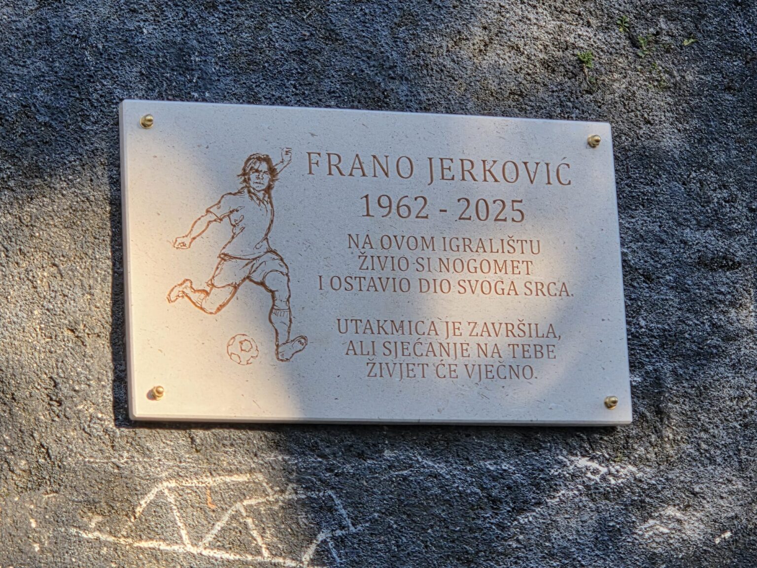 Na malonogometnom terenu kod dubrovačke Gimnazije otkrivena je spomen-ploča Franu Jerkoviću. Nogometaš, sportski entuzijast i veliki navijač Hajduka preminuo je na današnji dan 2025. godine.