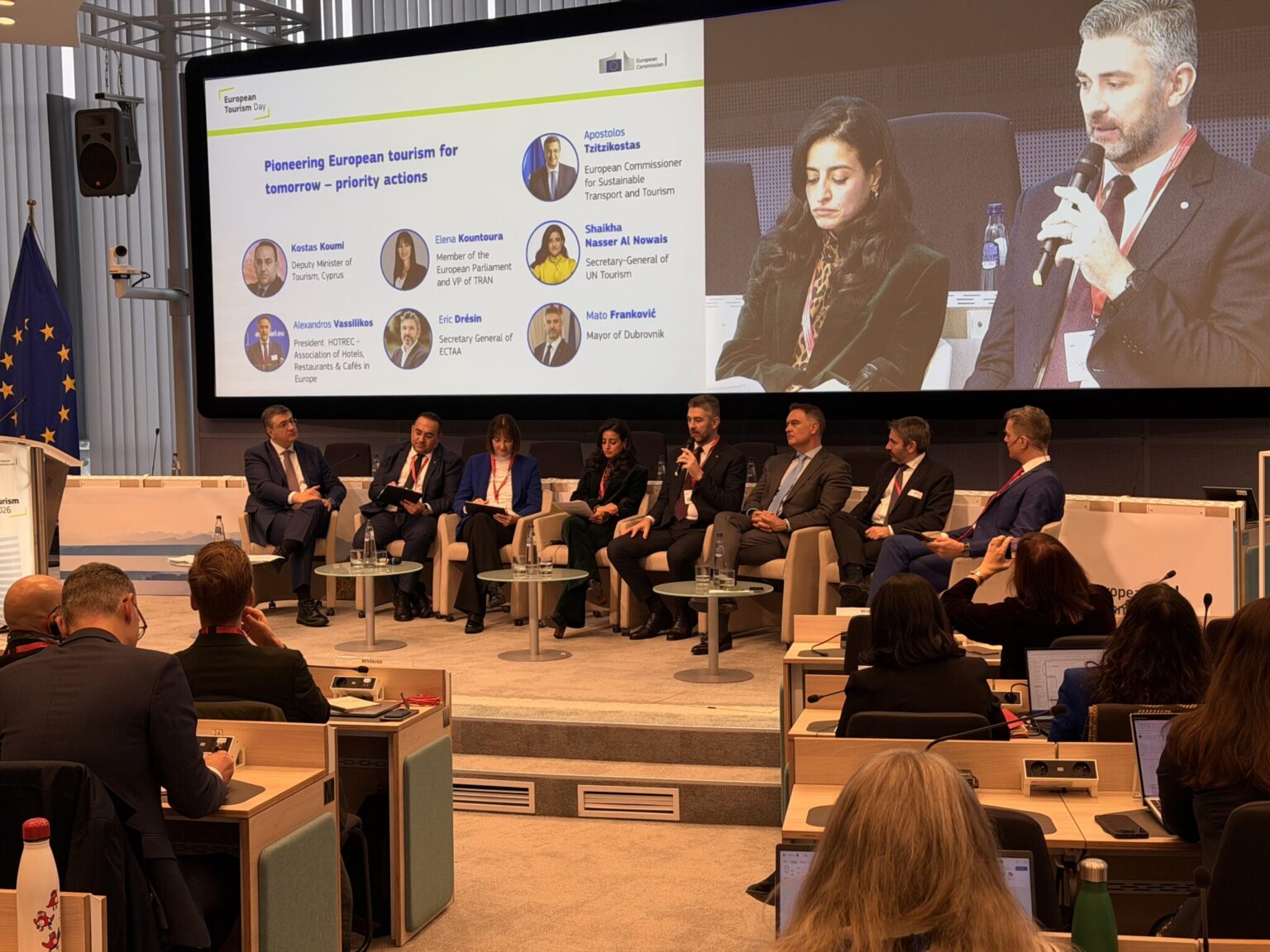 Uz gradonačelnika Frankovića i povjerenika Tzitzikostasa, na panelu su sudjelovali Kostas Koumis, zamjenik ministra turizma Republike Cipar, ujedno predstavnik države članice koja predsjeda Vijećem Europske, Elena Kountoura, zastupnica u Europskom parlamentu i potpredsjednica Odbora za promet i turizam (TRAN), Shaikha Nasser Al Nuwais, glavna tajnica UN Tourism, Alexandros Vassilikos, predsjednik HOTREC-a, europske krovne organizacije ugostiteljskog i hotelijerskog sektora i Eric Drésin, glavni tajnik ECTAA.