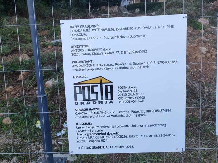 “Broj građevinske dozvole je bio napisan na tabli, koja je (iz nama nepoznatog razloga) uklonjena s gradilišne ograde.