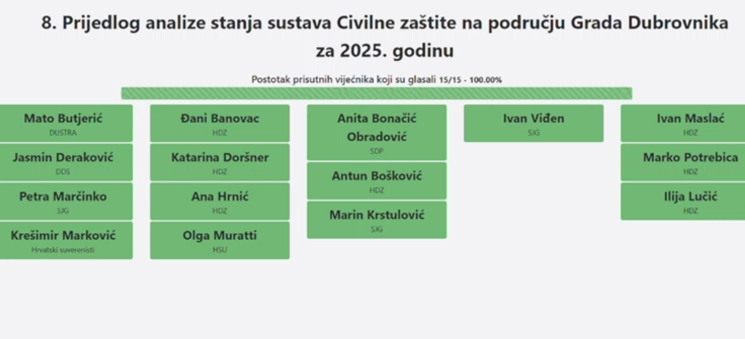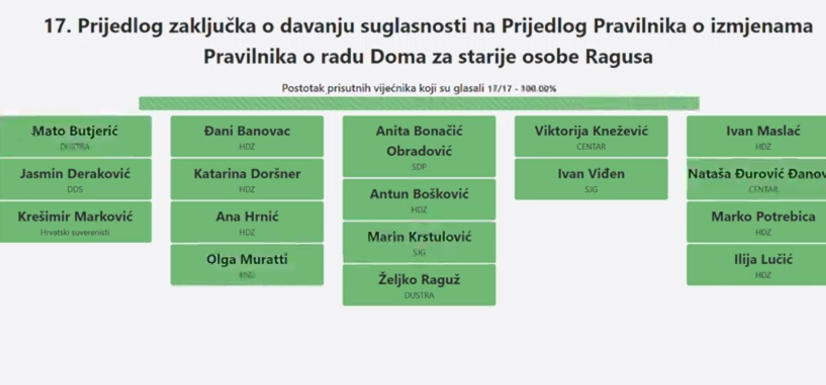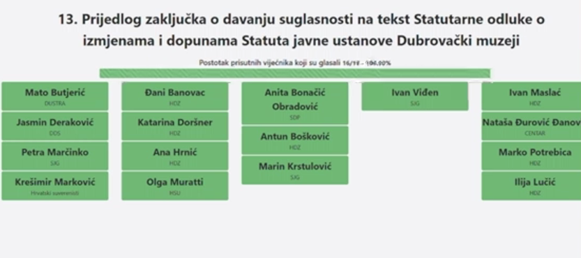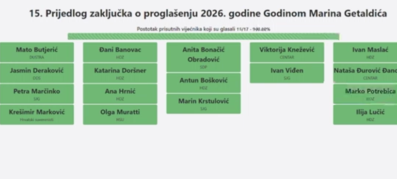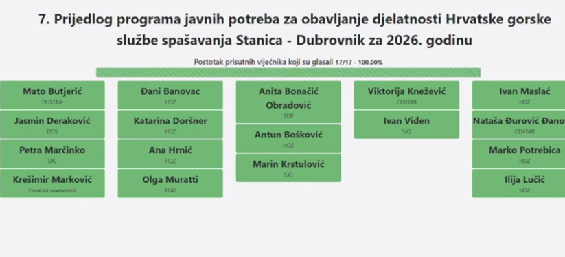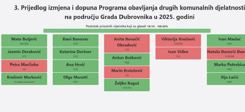 Predloženo je da se dnevni red nadopuni točka Prijedlog o proglašenju 2026. godina godinom Marina Getaldića, točkom vezano uz izmjenu i dopunu statuta Doma za starije osobe Ragusa, pravilinikom o radu Dom za starije osobe Ragusa i točkom o prvokupu udjela 6/90 zgrade bivšeg TIC-a na Pilama.
