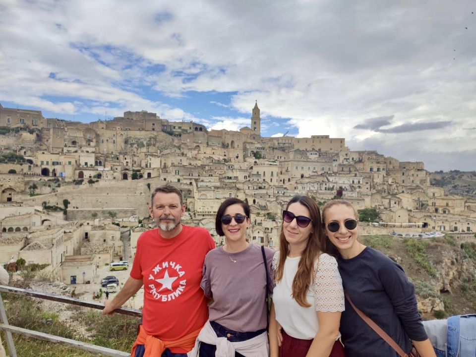 Automobilom smo se ukrcali na trajekt iz Grada do Barija gdje smo stigli zajedno s mrakom. Kao prenoćište odabrali smo gradić Casamassima. Pokazalo se to odličnim izborom. Gradić udaljen od Barija svega 40-ak minuta vožnje ponudio je izvrsnu pizzu. „Samo“ 65 različitih varijanti ovog talijanskog jela u izvedbi picajola Ciccio Peponea i to za cijenu najmanje upola od naših, visoko je podiglo letvicu kvalitete ovog jela. Ujutro smo krenuli na drugu obalu – prema Sorrentu, gradu prijatelju našeg Grada. Usput smo obišli dva turistička bisera i UNESCO cjeline- Alberobello i Materu.