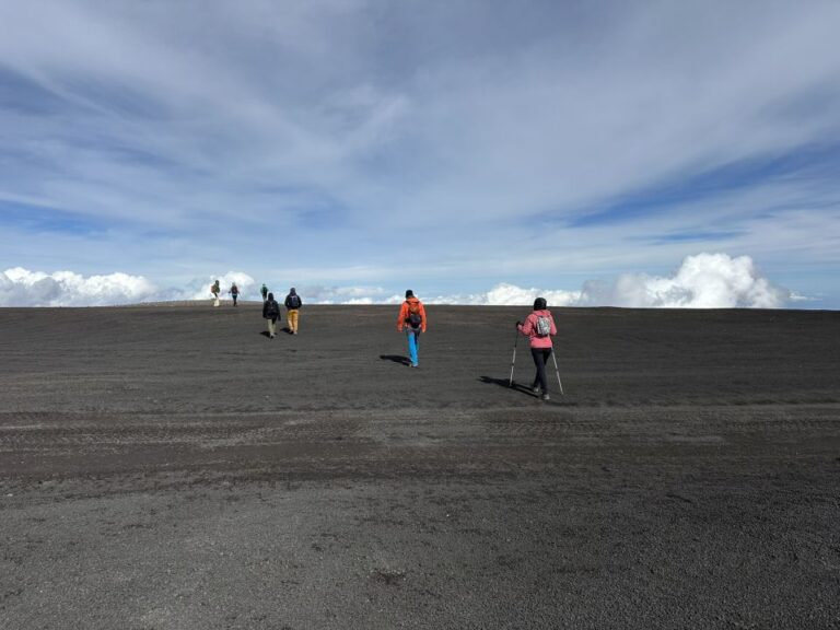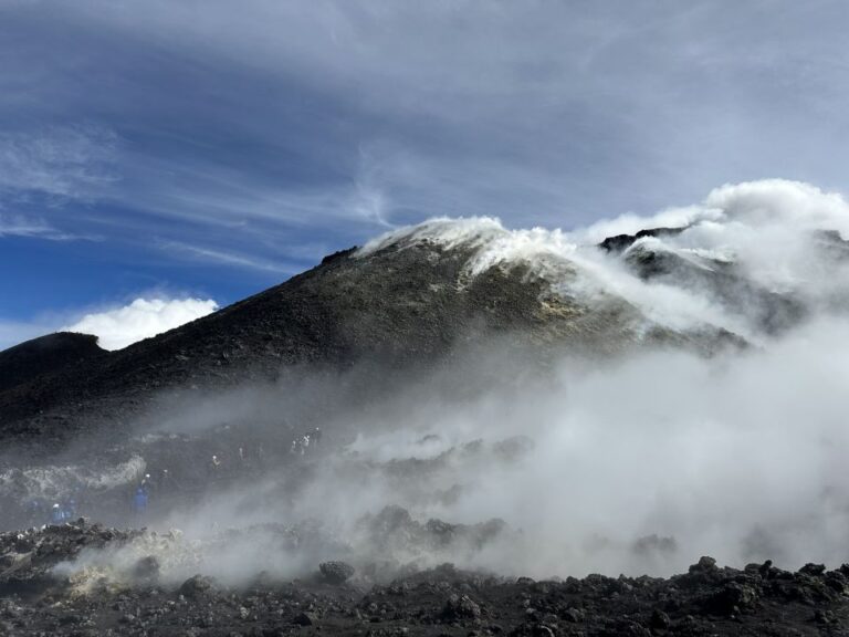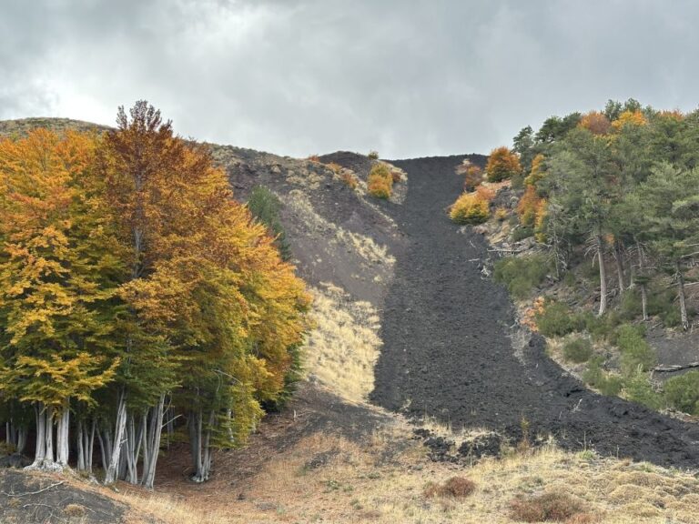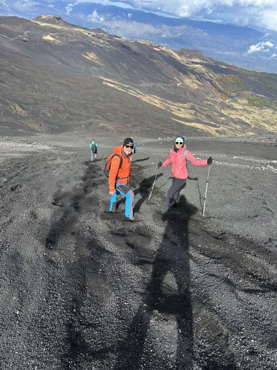 Sutrašnji dan je bio nova prilika za uspon na Etnu. Vrijeme je ovaj put bilo fantastično. Sunčano i sa slabim vjetrom. Svakako, na rubu kratera je bilo nula stupnjeva, što je s vjetrom davalo dojam blagog minusa. Tog dana nas je bilo jako puno na usponu tako da smo do polazne točke išli s dosta vozila. Međutim, samo nas je malo odabralo povratak „na noga“. Jedva dvije grupice po devetoro nas. No, bio je to odličan izbor i tih 12 kilometara planinarenja sa spustom od preko dvije tisuće metara (s 3340 na 1100) nezaboravno je iskustvo. Jurcanje nizbrdo sitnim vulkanskim pijeskom, upoznavanje s neobičnom vegetacijom te slušanje priča o Etni i Siciliji od našeg vodiča Santija. A vrh vulkana posebna je priča. Vodič nam je kazao kako 10 posto svega što izađe iz svjetskih vulkana izlazi iz Etne. A to što izlazi, osim sumpora, nevjerojatno je – odvratno. Kako je vjetar na vrhu mijenjao smjer tako bi nas svako malo potpuno prekrio dim iz vulkana. Otišli smo i do trenutačno najvišeg vrha Etne, vrha koji je izornio s posljednjom erupcijom – prošle godine. Vodič nam je rekao kako kod svake erupcije izroni tako neki vrh koji se potom uruši. A onda s novom erupcijom izađe neki novi „najviši vrh“. Prilikom povratka Santi nam je pričao o posljednjoj velikoj erupciji, onoj iz 2002. godine. Mogli smo gledati „rijeku“ kuda se lava spuštala s vulkana i koja je odnijela sve pred sobom – pa tako i sve nastambe u Piano Provenzano. Pokazivao nam je kratere iz kojih je lava sukljala, njih 25 samo u jednom dijelu planine. Inače, oko cijele Etne ima oko devet stotina kratera. Naučili smo i na kojim sve otocima uz Siciliju ima aktivnih vulkana, za što je sve dobra vuklanska zemlja i gdje je najveći nasad pistacija na otoku. Sve se to lijepo moglo vidjeti dok smo se spuštali.