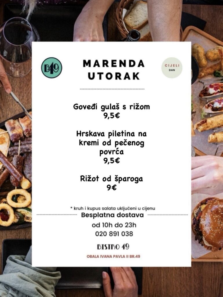 Bistro 49, Obala Ivana Pavla II, br.49, kontakt 020 891 038, moguća dostava