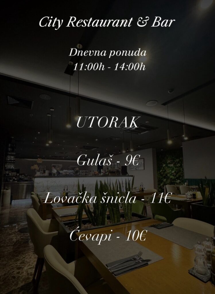 City restoran & bar, Hrvatskog crvenog križa 45, kontakt 020 301 800, ne vrše dostavu