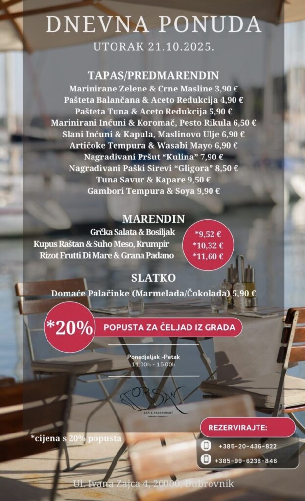 Imate ponudu dnevnih marendi, i želite ih promovirati na dubrovniknetu?! Javite se s povjerenjem na marketing@dubrovniknet.hr ili na 091 344 6000