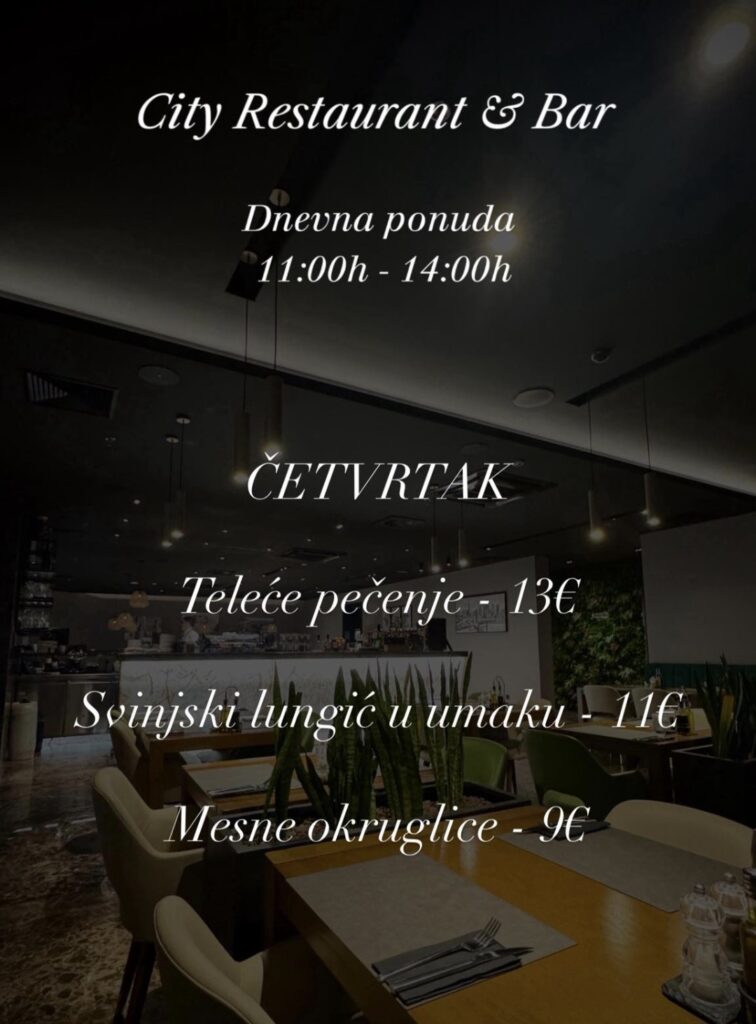 City restoran & bar, Hrvatskog crvenog križa 45, kontakt 020 301 800, ne vrše dostavu